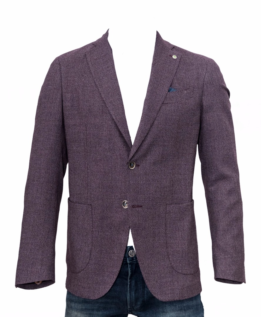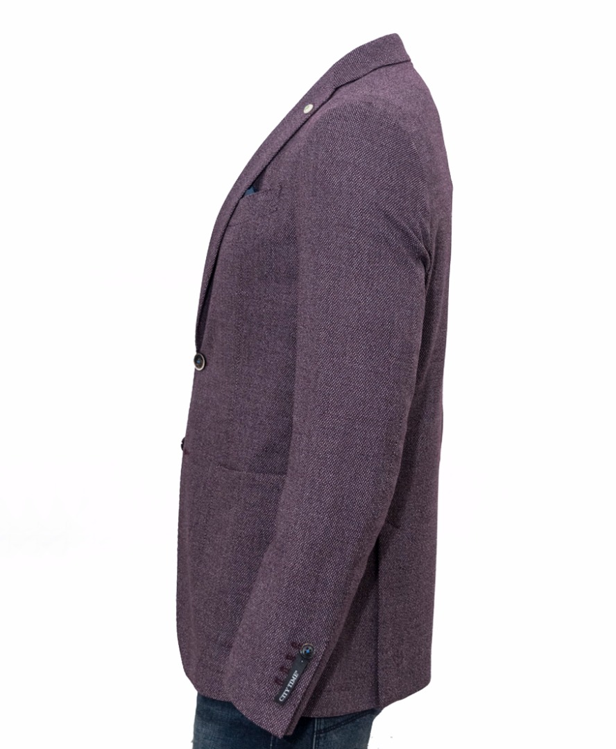 Giacca sfoderata City Time,due bottoni,due tasche a toppa piu taschino con pochette,quattro bottoni fondo manica con asole aperta,due spacchi sul retro.