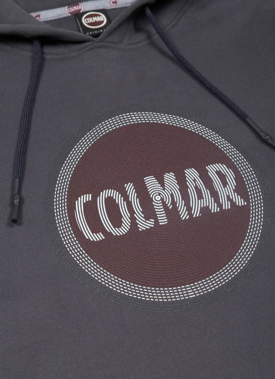 Felpa da uomo con cappuccio 100% cotone garzato Sounds, leggermente smerigliato e morbido al tatto. Con stampa gommata Colmar Originals, darà un tocco grintoso al vostro look casual. Cappuccio Coulisse di regolazione con puntale gommato Polsi e fondo in costina Abbinabile al pantalone in felpa Mod. 8254 9RR Stampa gommata effetto ricamo Colmar Originals sul petto