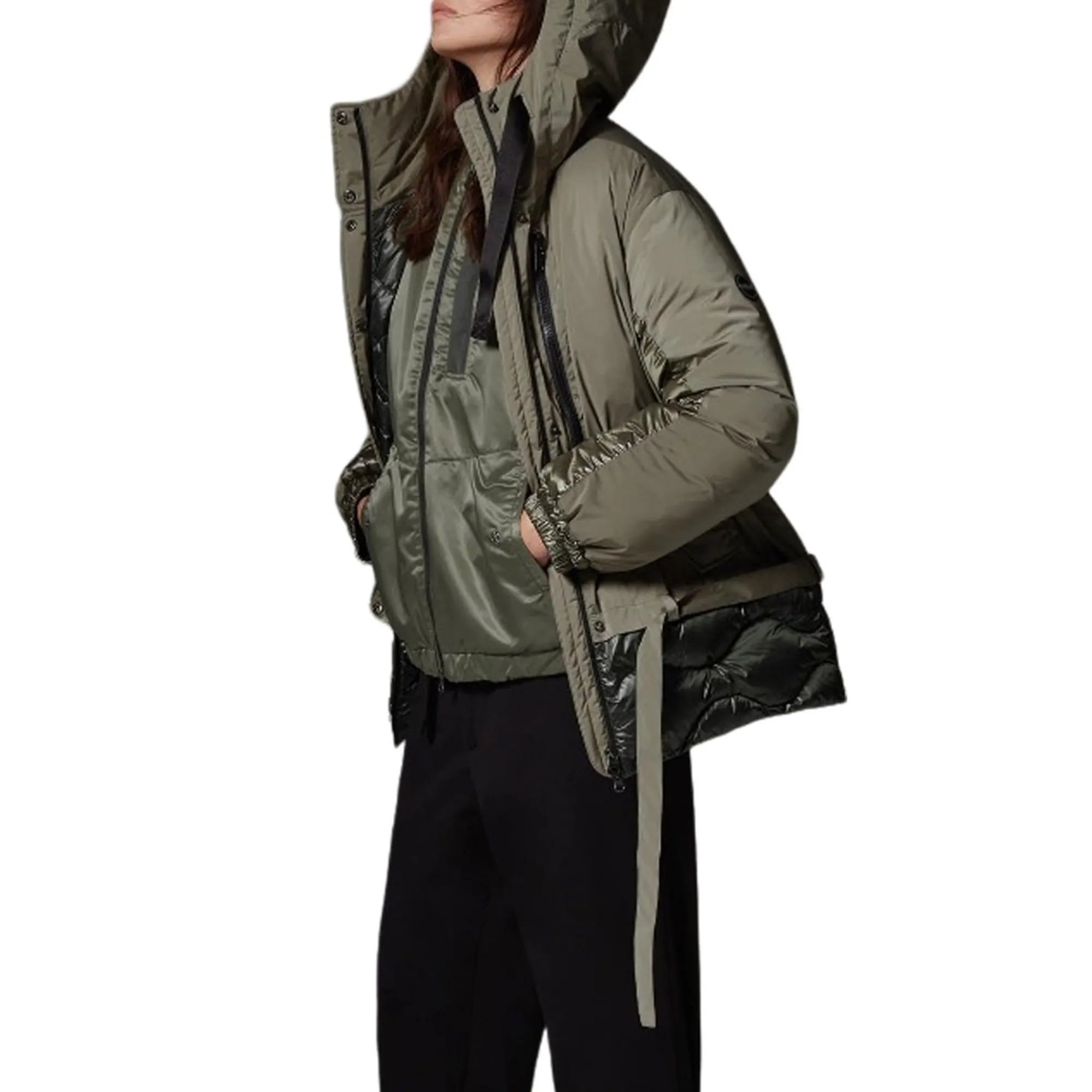 Giacca da donna in tessuto 3 strati stretch dall'aspetto opaco. Un capo contemporaneo dalla forma a trapezio realizzato abbinando ad un tessuto tecnico, che garantisce una performance di 5.000 mm di colonna d’acqua, un materiale riciclato cangiante e trapuntato a onde. Ricco di dettagli trendy come l'importante nastro per regolare l'ampiezza del cappuccio, questo modello femminile e di grande attualità racchiude in sè la fusione di due stili: quello delle collezioni sci, patrimonio dell'heritage di Colmar, ed il gusto e lo stile nipponico del designer Yosuke Aizawa che firma la nuova linea Colmar Revolution. Proposta essenziale per questo modello mix di tecnicità e glamour che nasce da una perfetta sintonia di stile e di visione che dà vita a capi realizzati con pregiati tessuti declinati in colori ispirati alla natura. Vestibilità confort Peso Autunnale Chiusura con zip e bottoni a pressione Tasche al petto con zip Tasche basse con bottoni a pressione Nastro elastico ai polsi Cappuccio fisso Coulisse di regolazione in vita e sul cappuccio Imbottitura in piuma naturale Etichetta interna YOSUKE AIZAWA Impermeabilità del tessuto: 5.000 mm di colonna d’acqua Trattamento idrorepellente>/li> Logo Colmar Originals applicato sulla manica sinistra