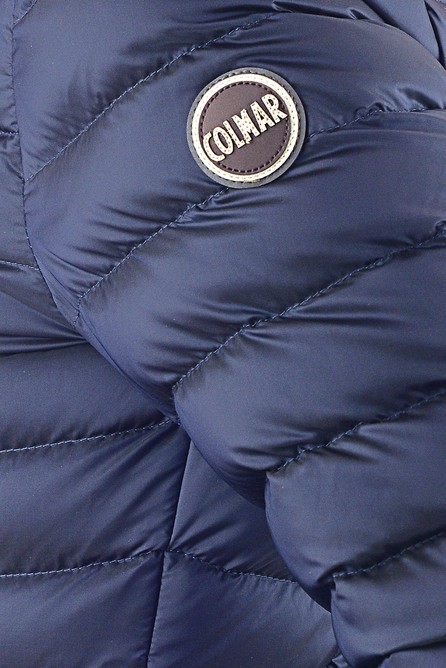 Piumino Colmar Originals in nylon satinato trapuntato Nero. Imbottito in piuma d'oca. Ampio collo alto imbottito. Chiusura frontale con zip doppio cursore e bottoni a pressione. Tasche frontali con zip a scomparsa. Modello sciancrato. Logo in gomma applicato sul retro e sulla manica sinistra.