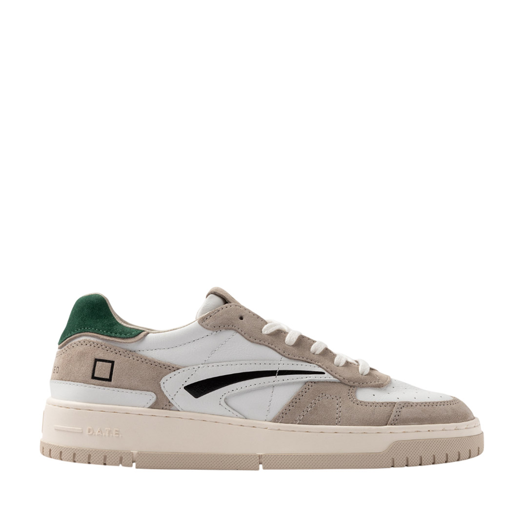 La punta è traforatura per una maggiore traspirabilità. Sulla linguetta è cucita la label in suede con logo D.A.T.E. I lacci sono in cotone e il logo quadrato è impresso lateralmente. Il talloncino è in suede colore verde. Il nome del modello è impresso sul retro. Fodera in pelle e spugna di cotone. Il soletto interno è rialzato di 2.5 cm per un migliore comfort. Il logo quadrato e la scritta D.A.T.E. sono in rilievo sulla suola. La suola in gomma, alta 2.5 - 3.5 cm, è cucita. Tutti i materiali selezionati sono Made in Italy. Vestibilità: REGULAR