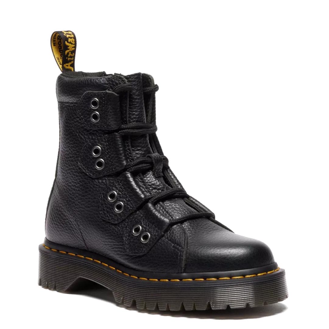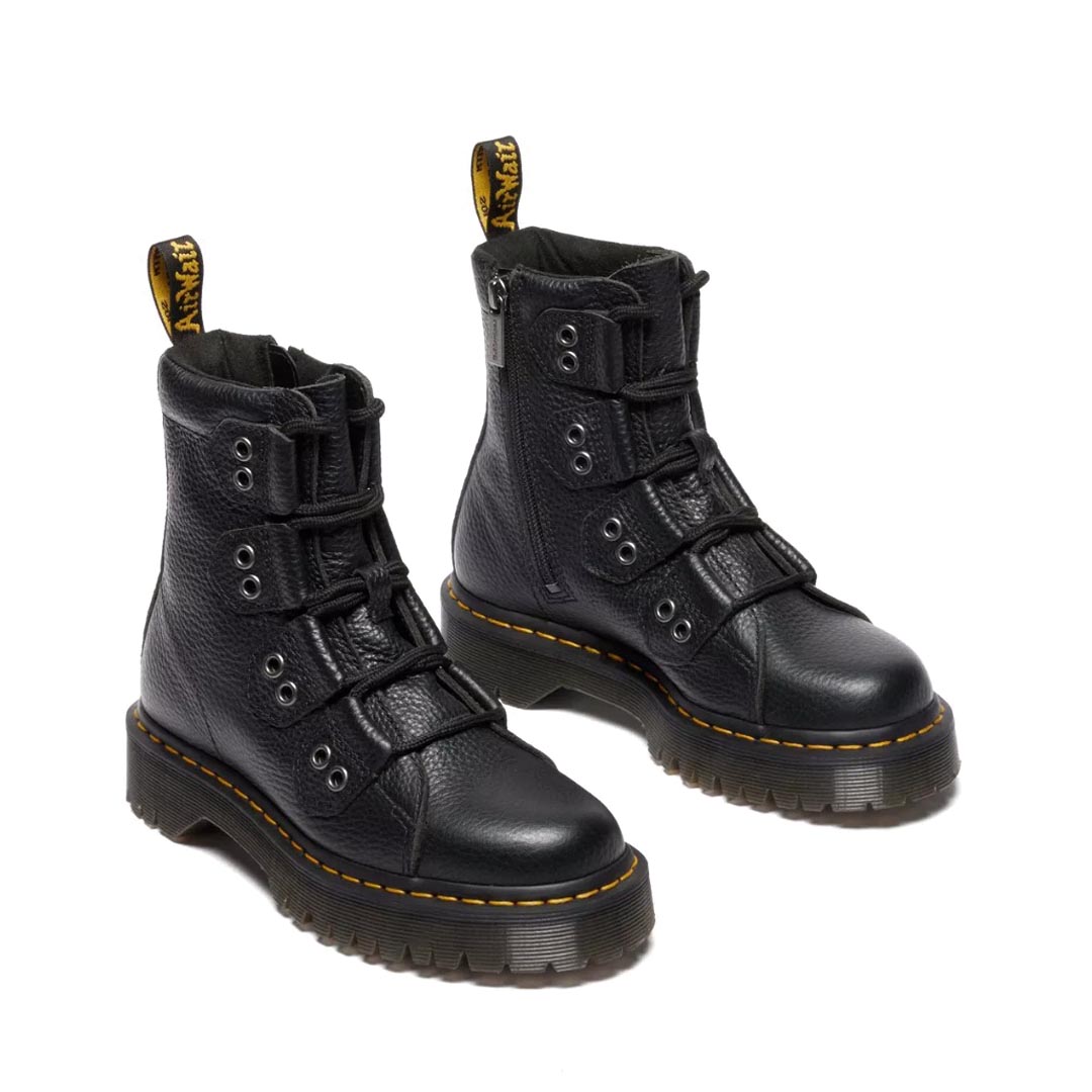 Lascia il segno su tutta la linea. Gli stivali 1460 Bex sono pronti a darti più volume, più texture, più altezza. Realizzati in pelle Milled Nappa, uno dei materiali più morbidi che abbiamo per renderti la calzata comoda fin dal primo passo. Sono rifiniti da linguette di pelle laterali con occhielli decorativi argentati e lacci intrecciati in mezzo. Poggiano su una suola fumé Bex per dare qualche centimetro in più di altezza, ulteriormente rinforzata dalle nostre caratteristiche cuciture gialle. Milled Nappa è una pelle di medio peso, morbida e con una rifinitura a grana larga.