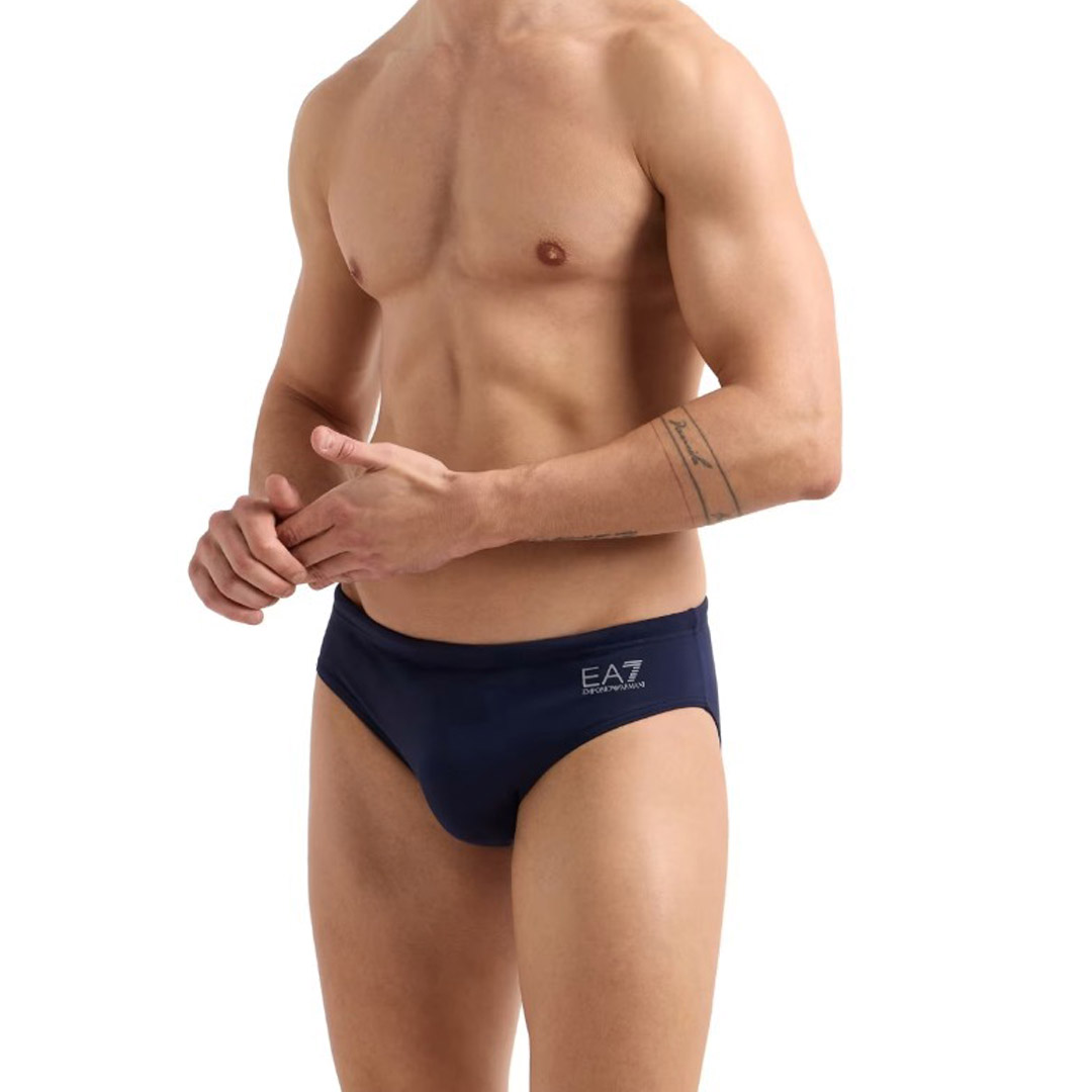 Costume da uomo a slip, pensato per nuotatori outdoor e indoor. Un modello che assicura una buona libertà di movimento e comodità, personalizzato dal logo EA7 a contrasto. Elastico in vita con coulisse Logo EA7 a contrasto sul fianco sinistro
