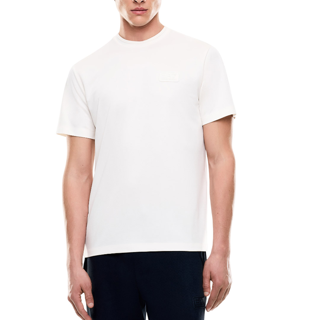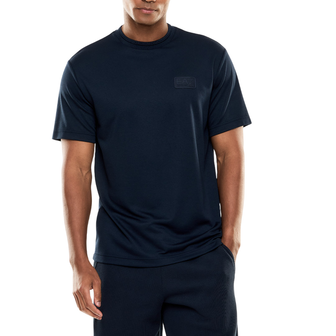 T-shirt girocollo a maniche corte realizzata in jersey di misto modal, dalla vestibilità regular, personalizzata dal logo EA7 sul petto. Un modello sempre attuale, portavoce dello spirito sportivo ma ricercato del brand, adatto non solo per lo sport, ma anche per completare look dallo stile rilassato e casual.