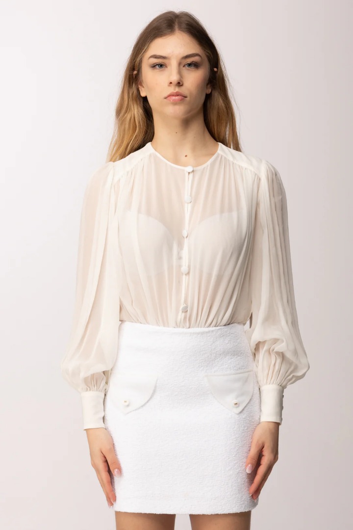 Elisabetta Franchi Abito In Georgette E Tweed Boucle Avorio Ab95262E2 182063