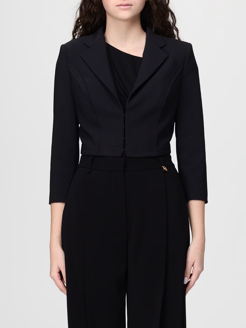 Elisabetta Franchi Giacca In Doppio Crepe Stretch Con Motivi A Taglio Vivo Nero Gi22261E2 172400