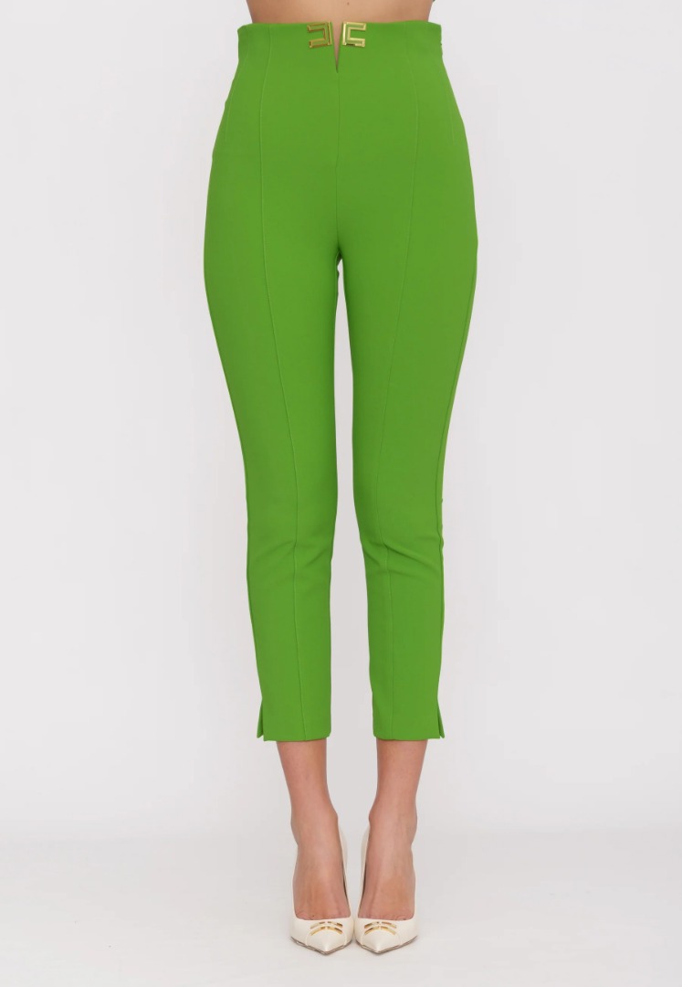 Elisabetta Franchi Pantalone In Doppio Crepe Stretch Con Dettagli Logo Verde Pa16361E2 172424
