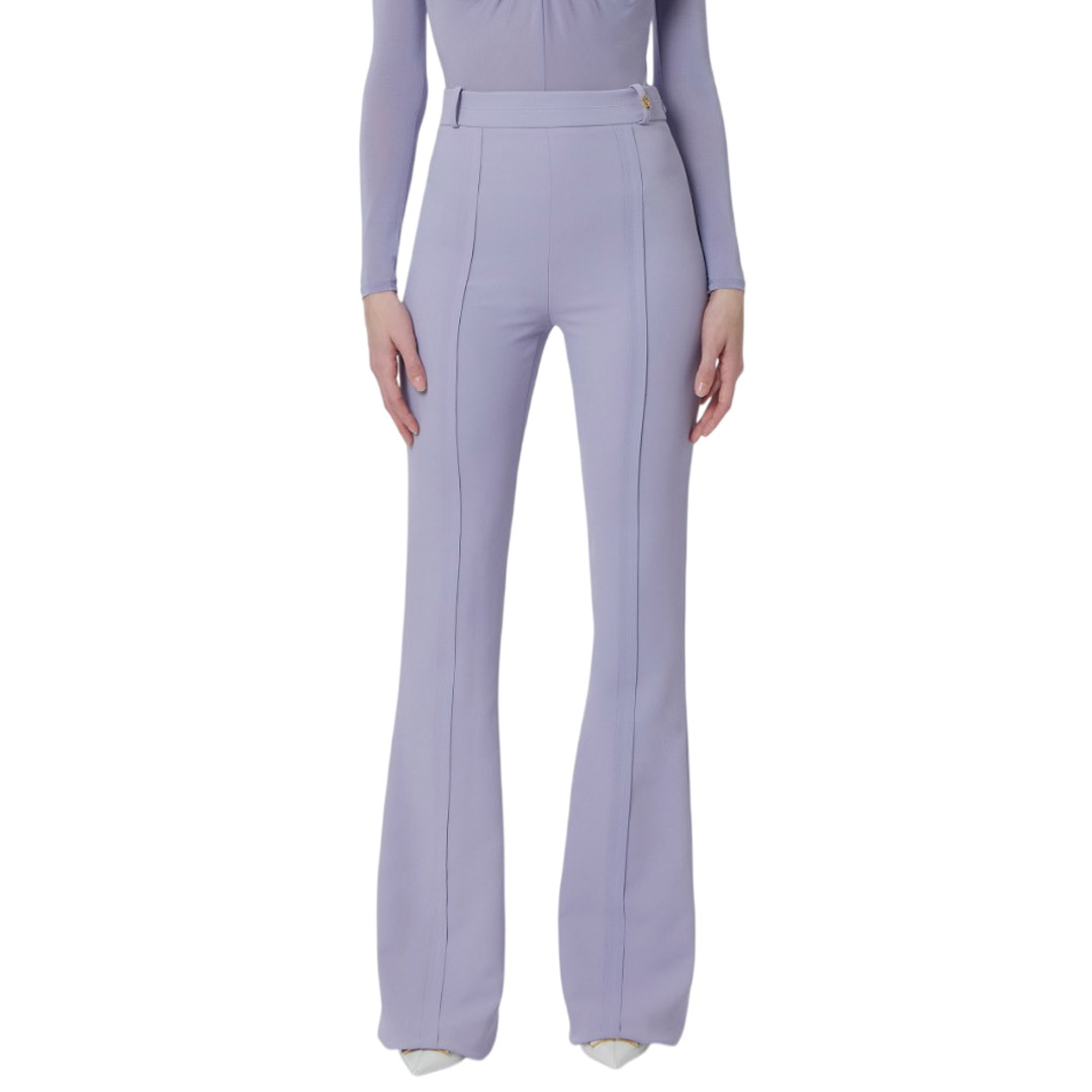 Elisabetta Franchi Pantalone In Doppio Crepe Stretch Con Logo Charm Lilla Pa16961E2 177844