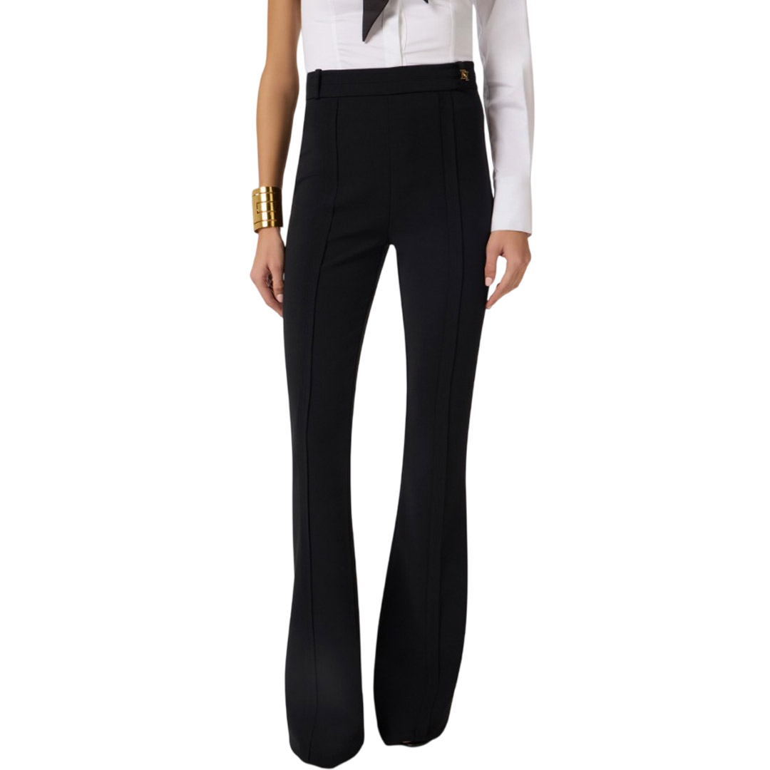 Elisabetta Franchi Pantalone In Doppio Crepe Stretch Con Logo Charm Nero Pa16961E2 177850