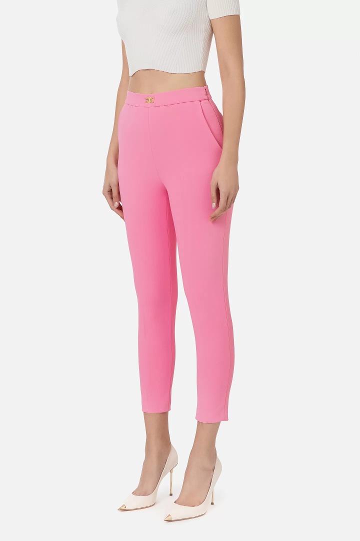 Elisabetta Franchi Pantalone In Doppio Crepe Stretch Rosa Pa05231E2 76970