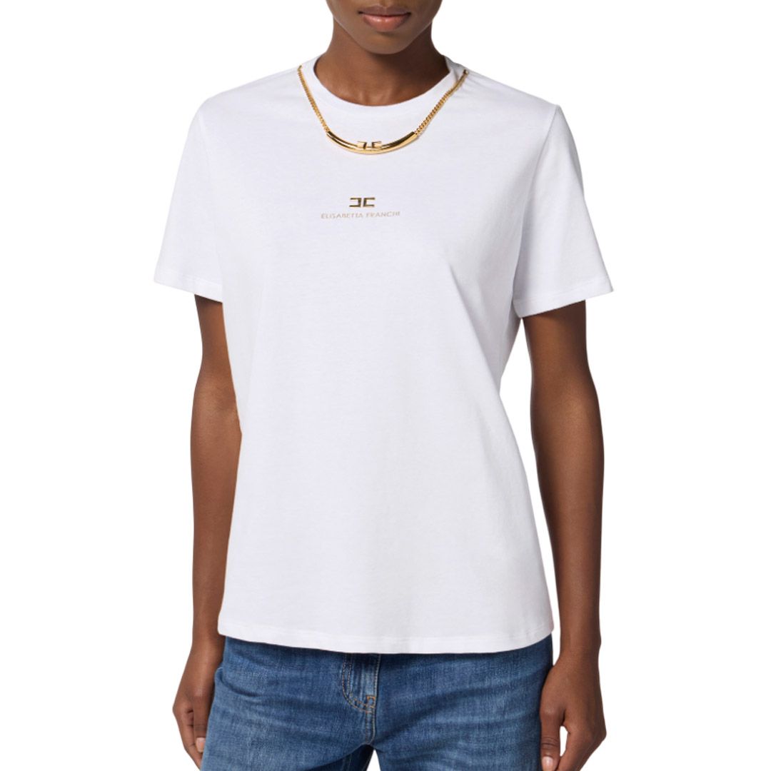 Elisabetta Franchi T-Shirt In Jersey Di Cotone Con Collana Gesso Ma02856E2 153620