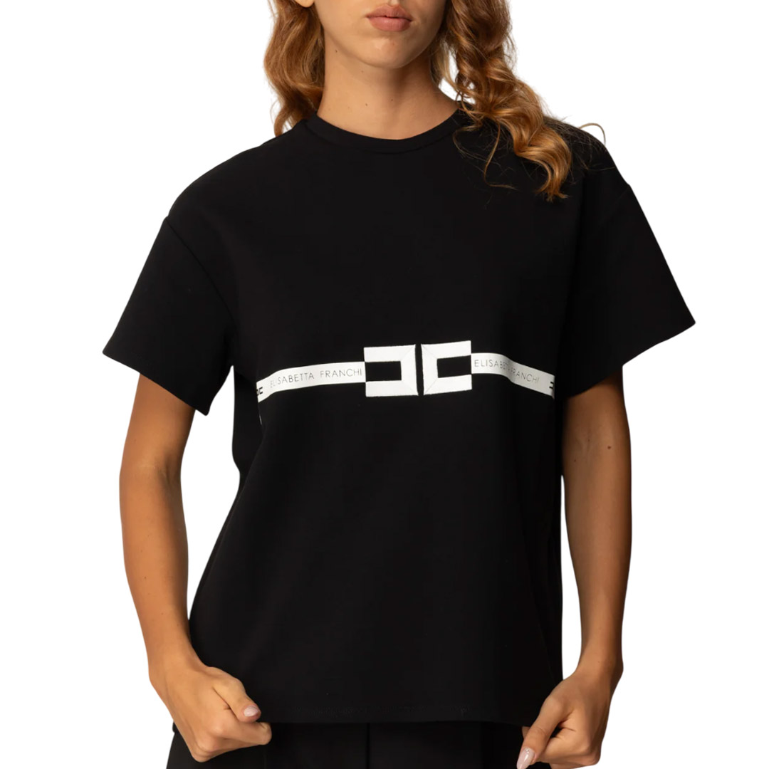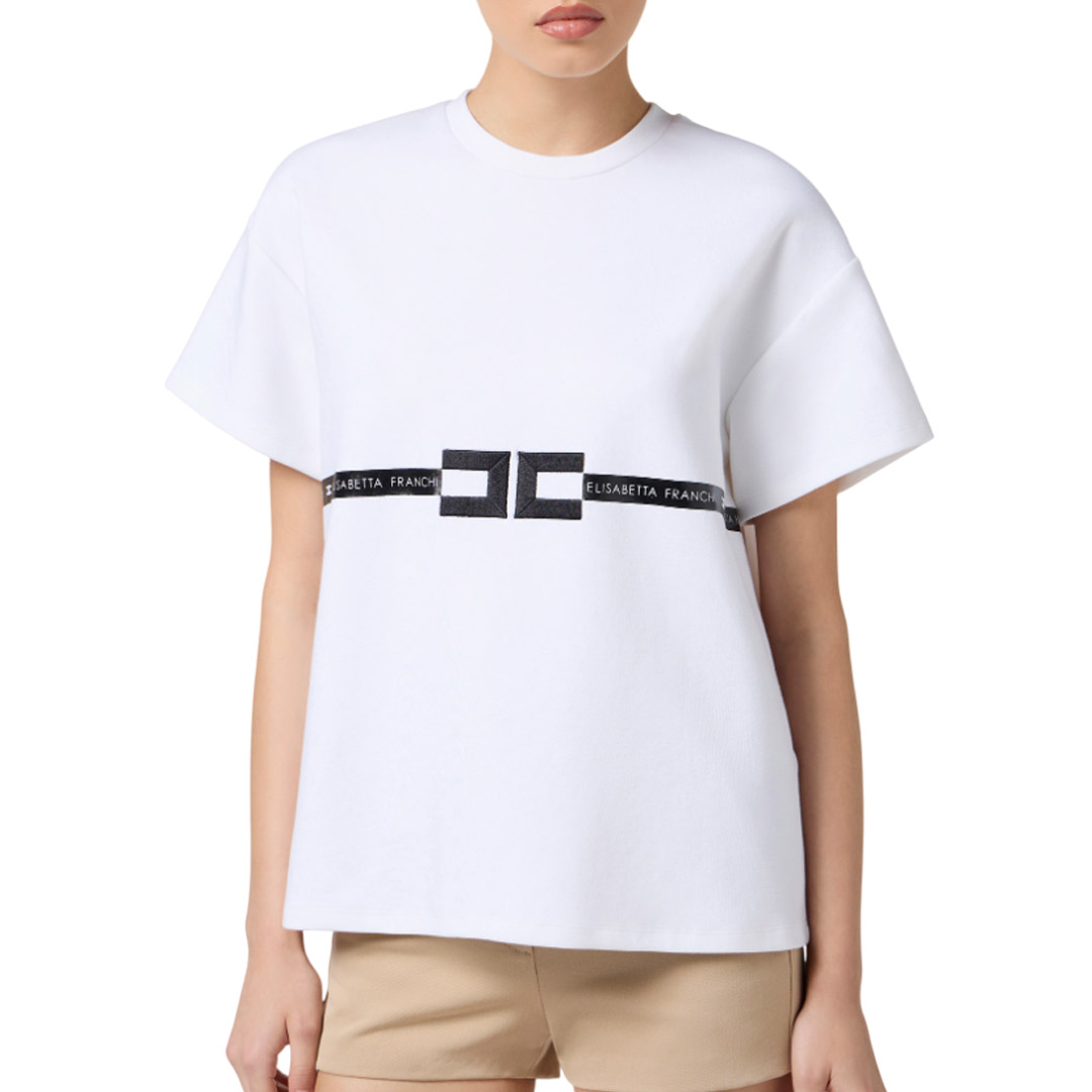Elisabetta Franchi T-Shirt In Jersey Di Cotone Pesante Con Logo Ma02256E2 153632