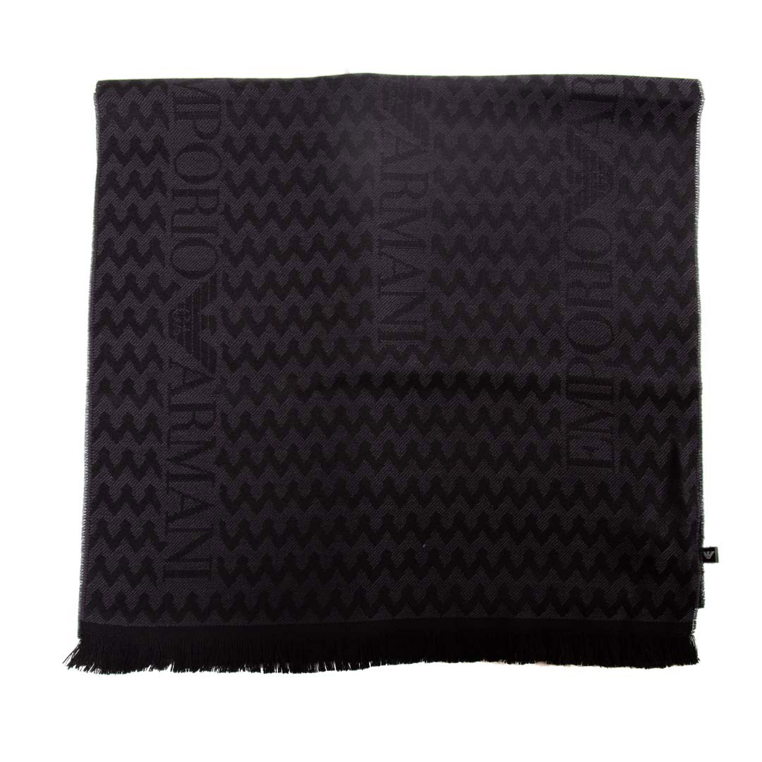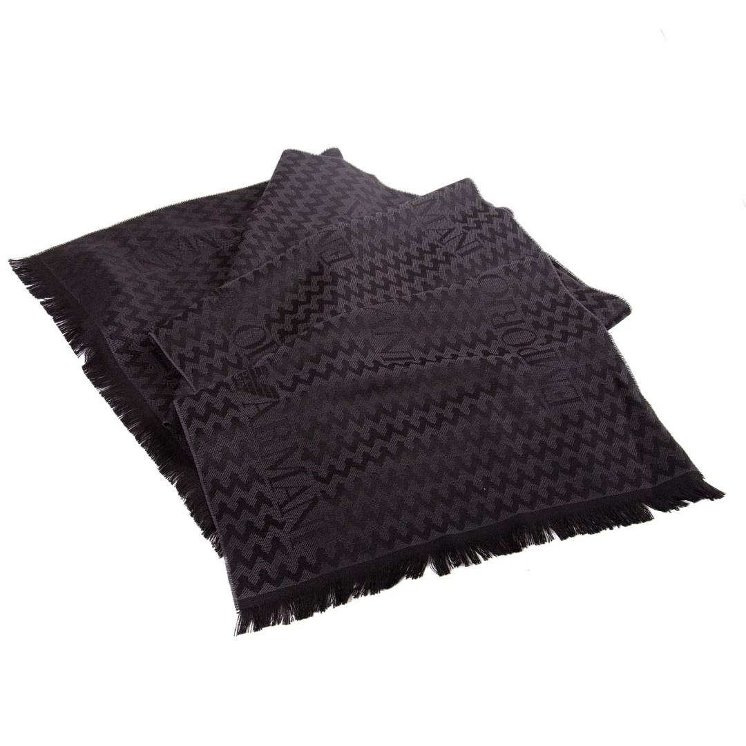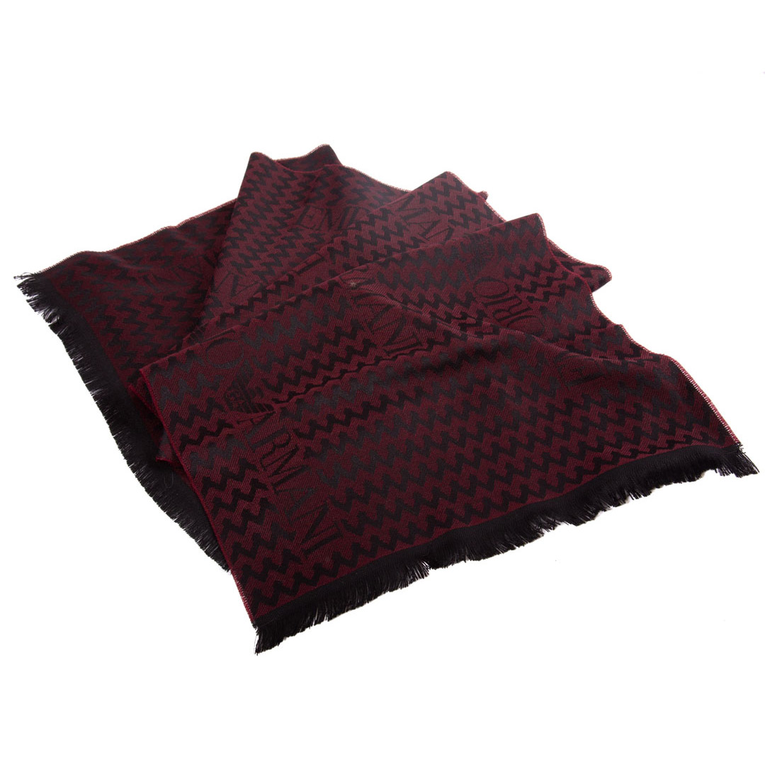 Sciarpa in misto lana con lavorazione in tono colore, bordi sfrangiati, logo ricamato.