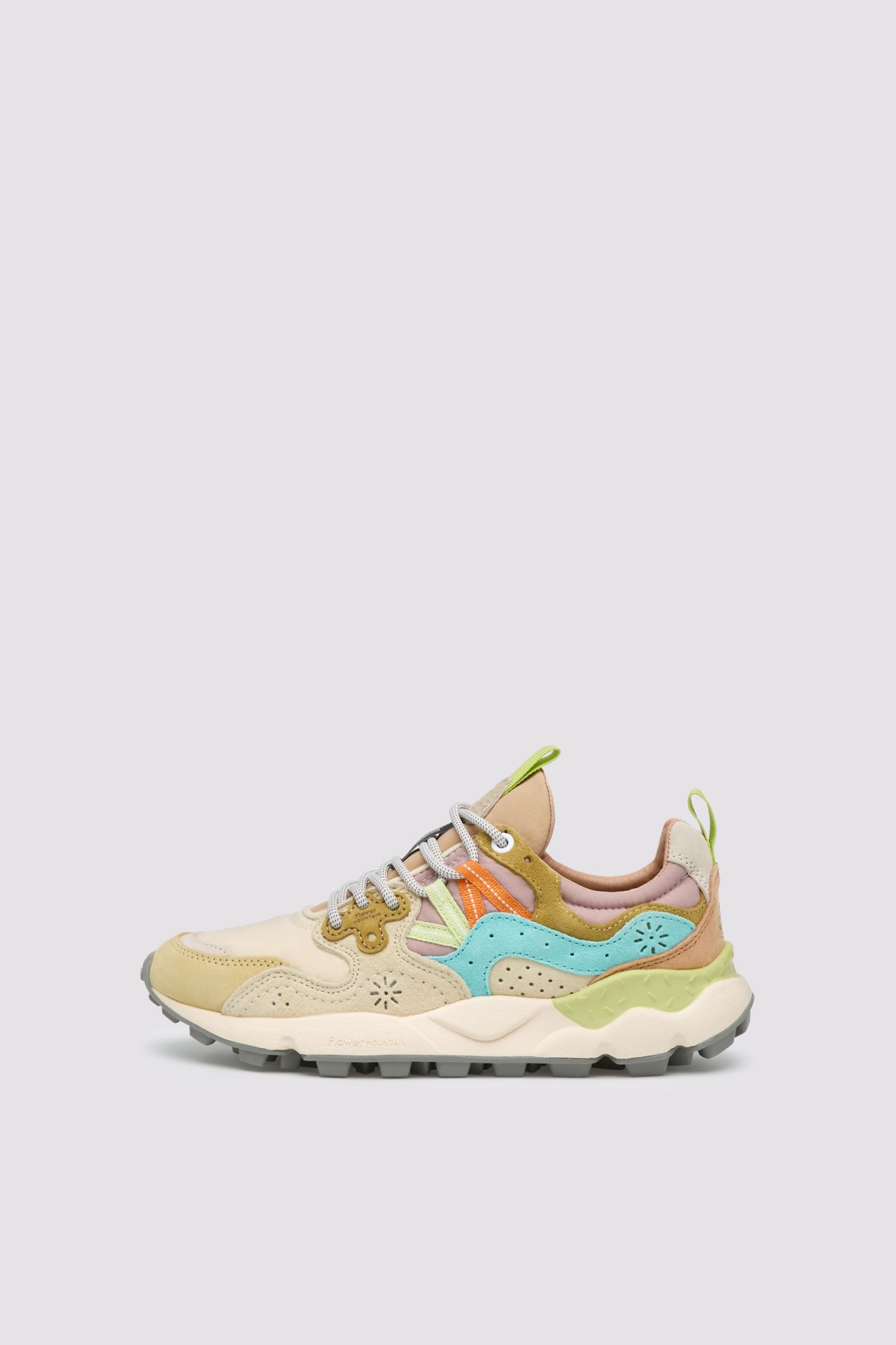 Femminilità e spirito outdoor si fondono in un design attuale, perfetto da abbinare alle mise active quanto alle longuette più glamour: Yamano è la sneaker dalla tomaia in pelle caratterizzata da inserti in tessuto tecnico e dall'iconico occhiello dalla forma sagomata, ispirata al fiore del tarassaco. Le linee evocano le calzature trekking, con suola in gomma ultra leggera e battistrada dentellato. La soletta interna in sughero naturale antibatterico assicura benessere al piede e comfort all day long.
