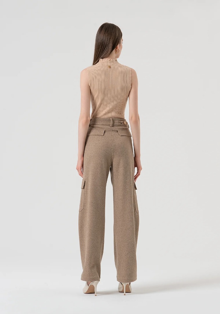 Pantaloni cargo con vita alta, tasche alla francese, grandi tasche applicate sui lati e fondo gamba stretto