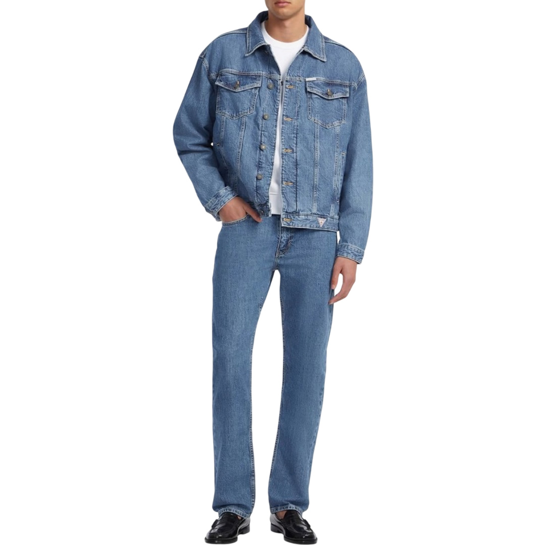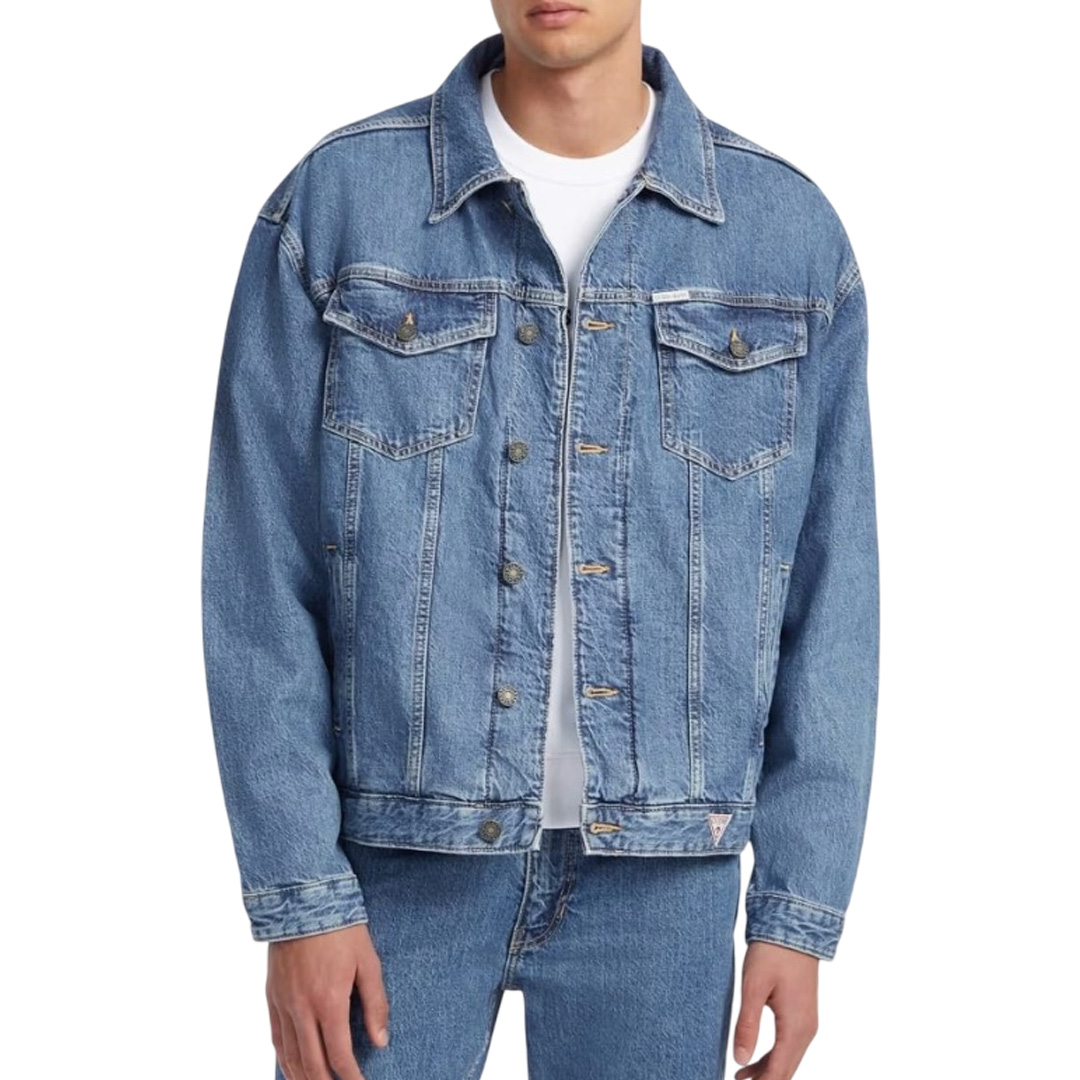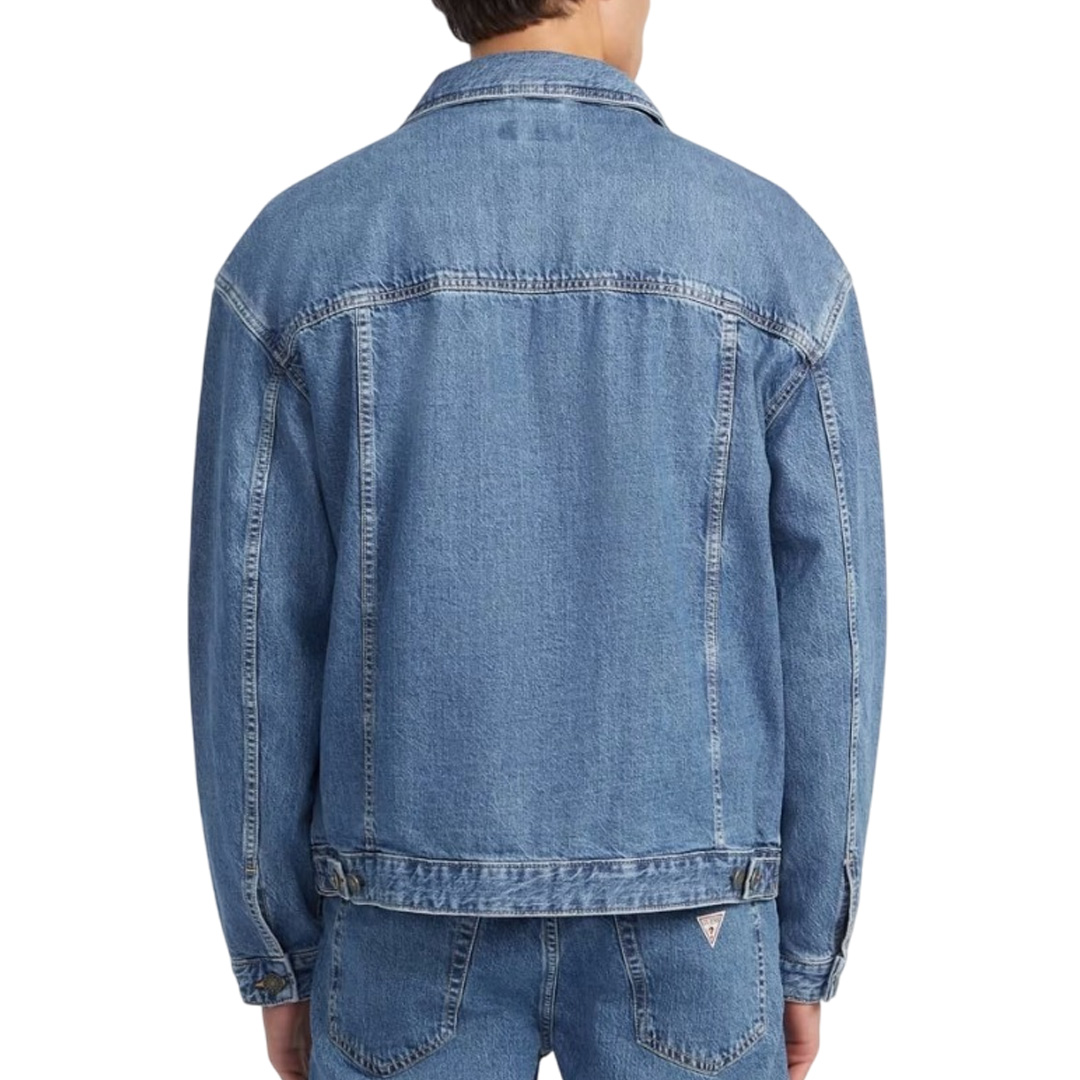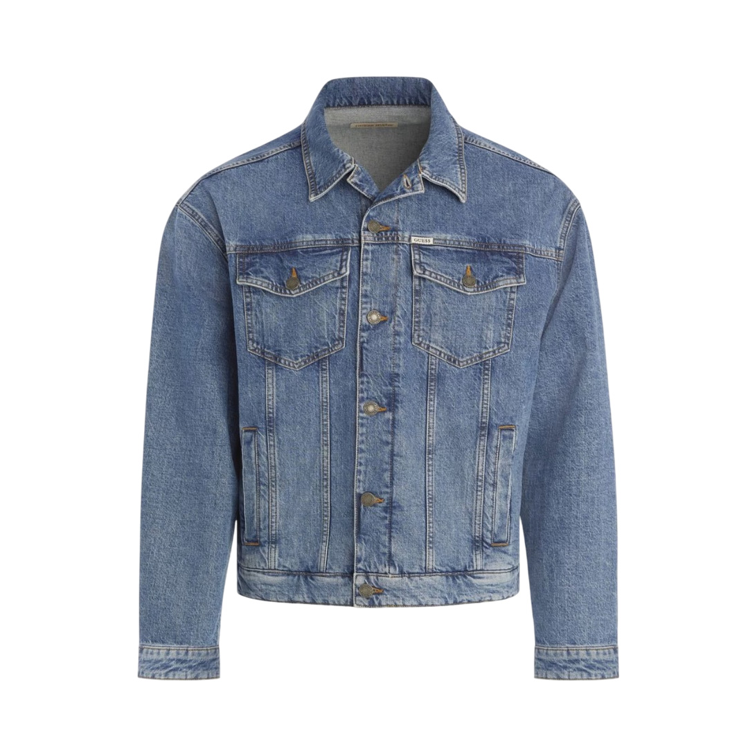 Giacca trucker in denim stretch. Colletto ripiegato. Manica lunga. Vestibilità oversize. Chiusura con bottoni sul davanti A causa della natura del tessuto e del lavaggio, ogni capo presenta un aspetto unico. Tasche su entrambi i lati del petto. Cuciture piatte. Tasche su entrambi i lati.