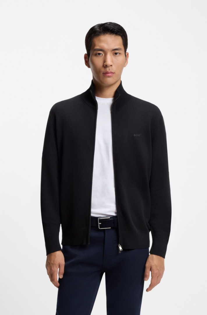 Arricchisci il tuo guardaroba con la morbidissima maglia di cotone e la comoda vestibilità regular fit di questo cardigan BOSS Uomo. Ricamato con logo tono su tono. Questo prodotto contiene almeno l'80% di materie prime di qualità superiore. Questo prodotto è realizzato per almeno l'80% in cotone proveniente da agricoltura rigenerativa. L'agricoltura rigenerativa dà priorità alla conservazione e al ripristino degli ambienti naturali, con l'obiettivo di migliorare la biodiversità, preservare la qualità dell'acqua e migliorare le condizioni del suolo. Regular fit Collo con zip Manica lunga Lunghezza standard