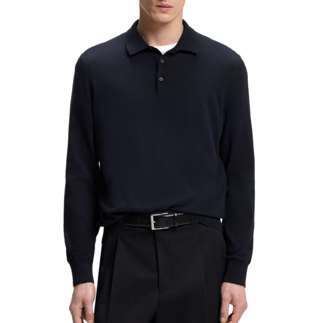 Crea look casual classici con il colletto polo e la maglia di cotone pregiato di questo maglione BOSS Uomo. Vestibilità straight fit. Regular fit Colletto polo Manica lunga Polsini a costine Lunghezza standard