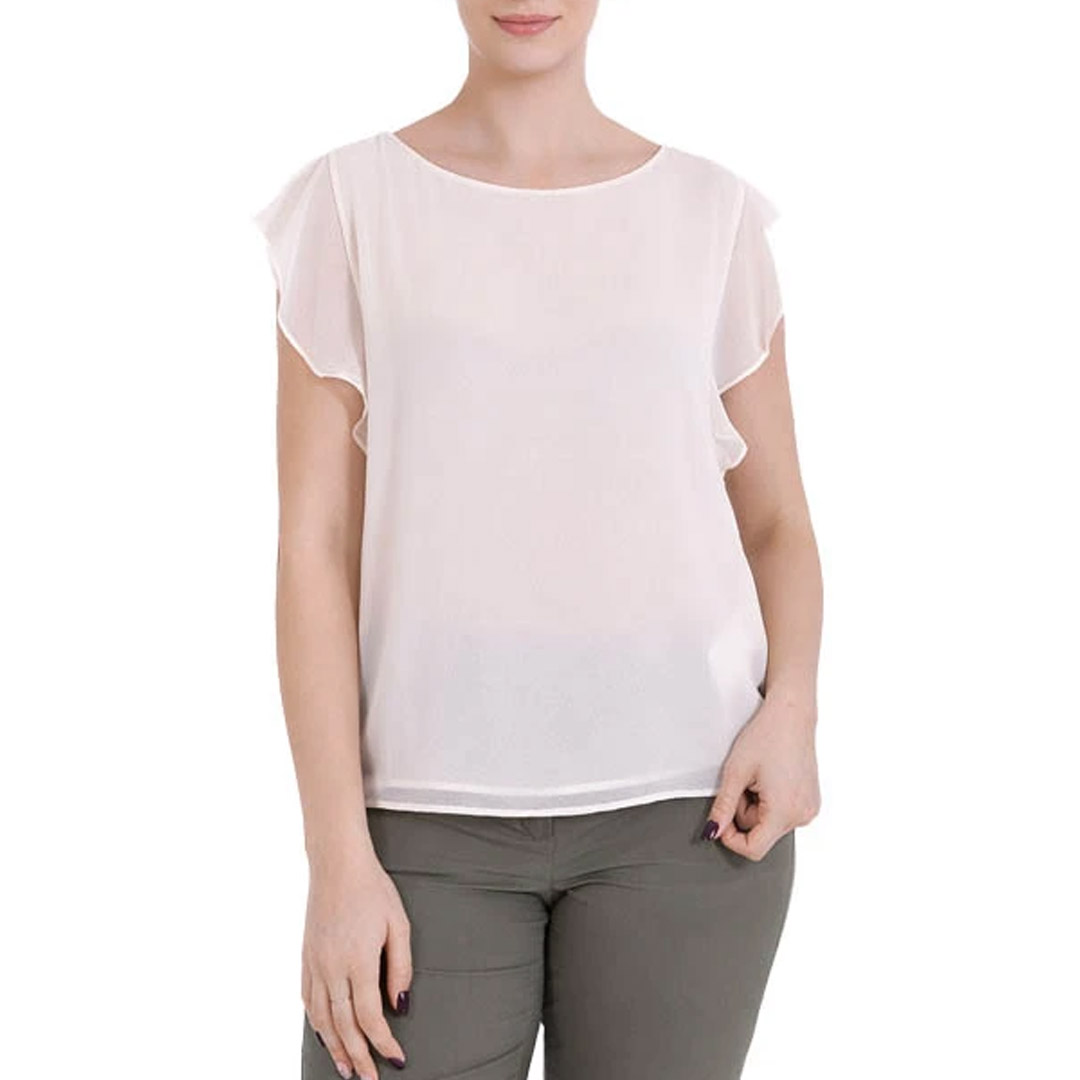 Blusa leggera e delicata, perfetta per completare look estivi con un tocco femminile e raffinato grazie al tessuto fluido e alle maniche morbide. Blusa in tessuto leggero e fluido Vestibilità morbida Scollo rotondo Maniche corte con taglio a mantella Linea pulita ed essenziale