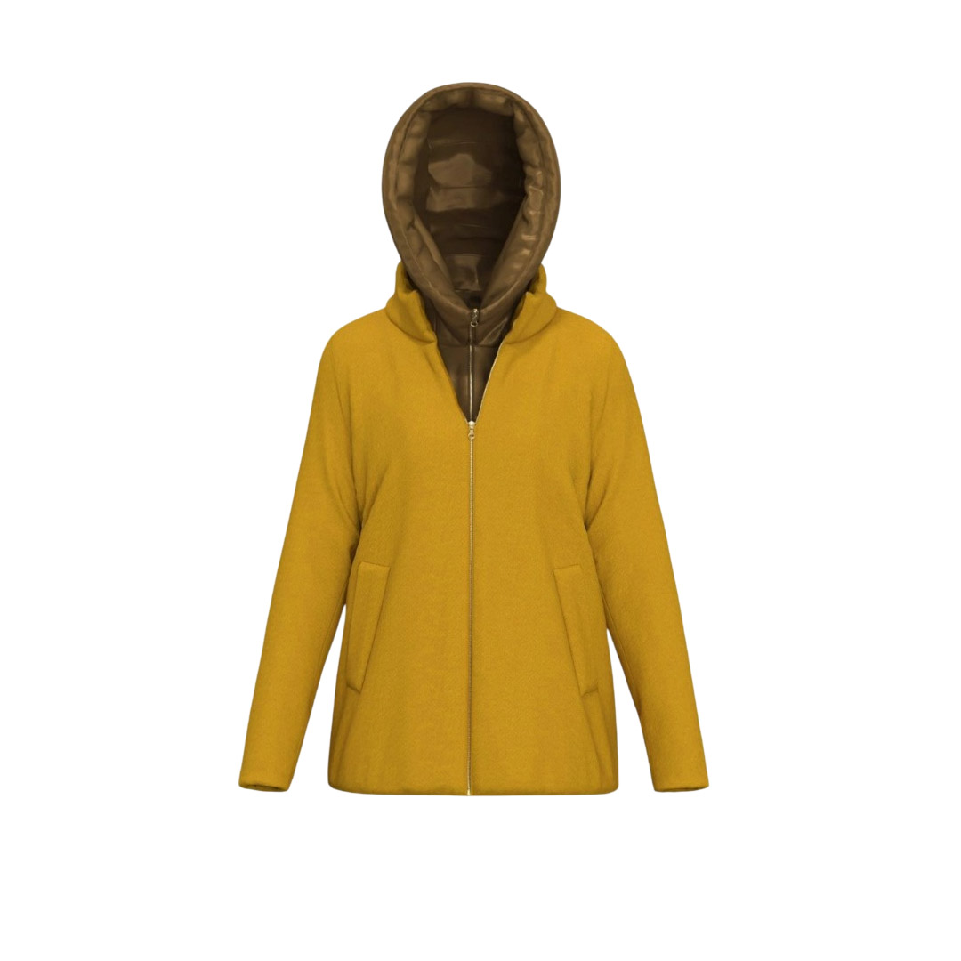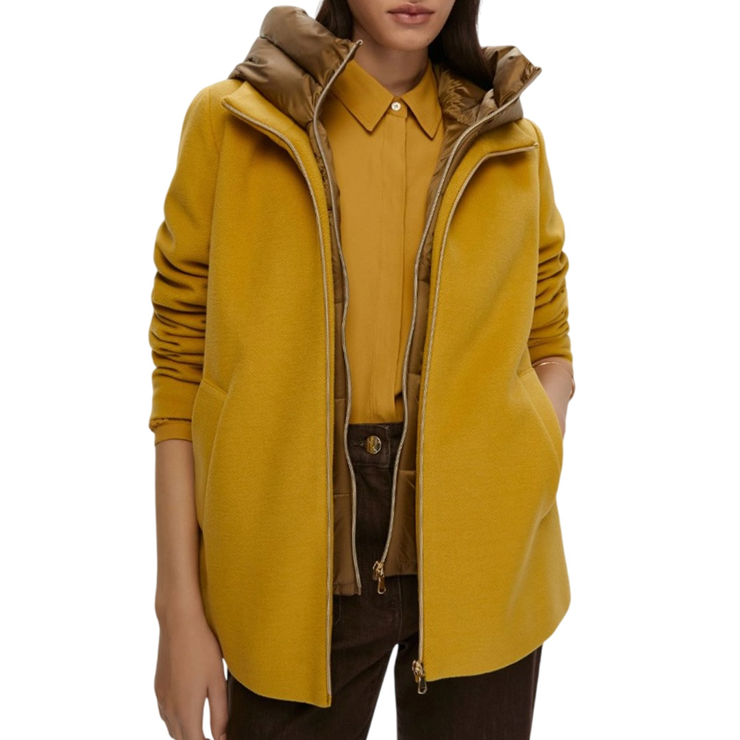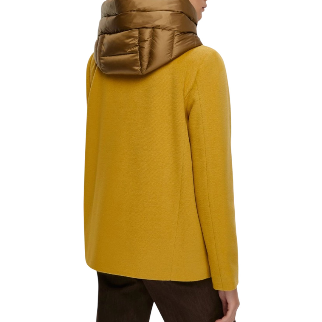 Compatto e trasformabile, questo giaccone in panno soft coniuga funzionalità e stile urbano. La pettorina e il cappuccio in tessuto antigoccia si possono rimuovere, svelando un design più essenziale. Giaccone corto in panno soft imbottito Fit dritto Collo con cappuccio e pettorina staccabili in tessuto luxury antigoccia Chiusura con full zip Tasche laterali a filetto