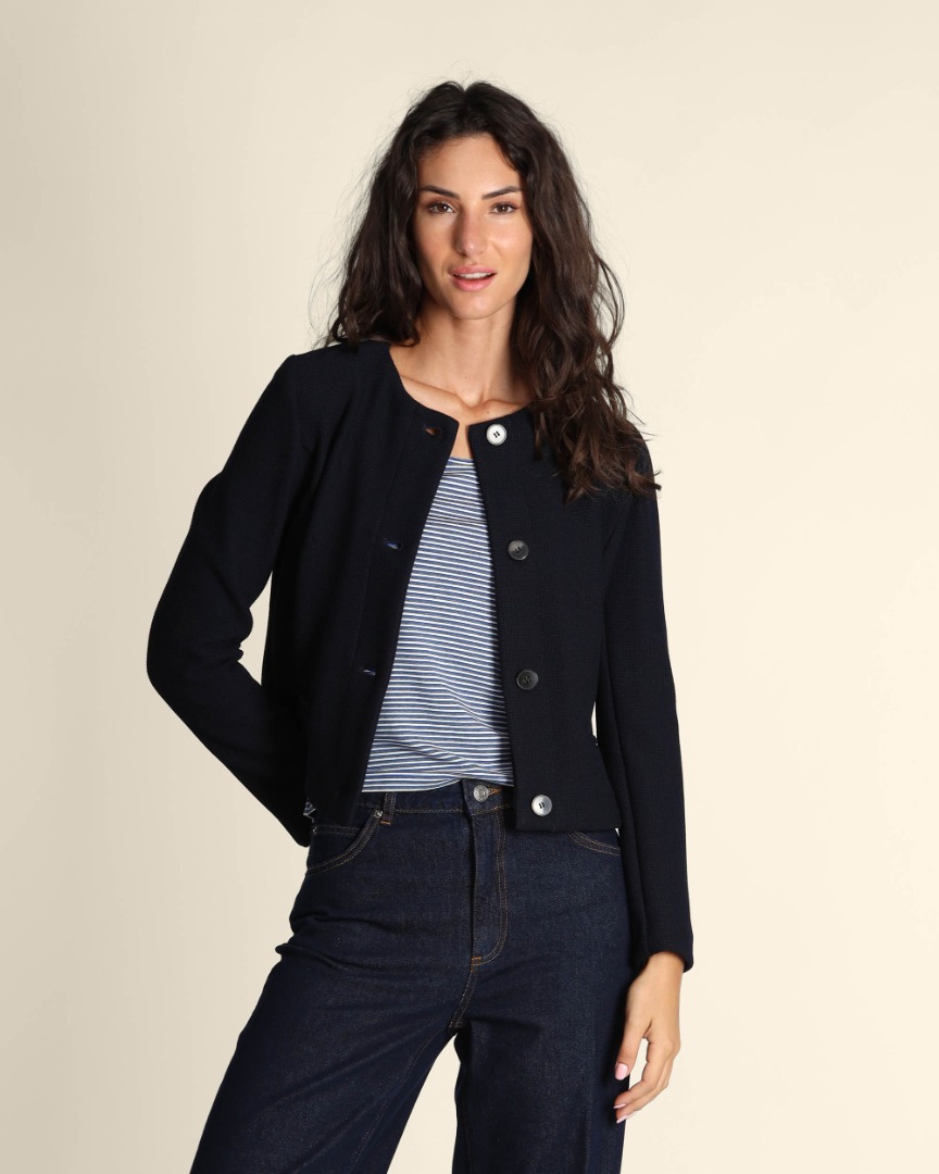 Giubbino estivo Linea Emme, chiusura a zip doppio cursore piu bottoni, cintura in vita, due tasche a pattina, bottone fondo manica.