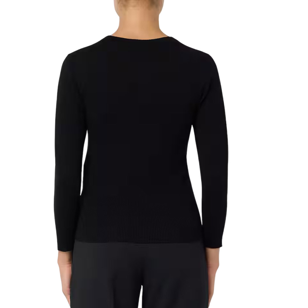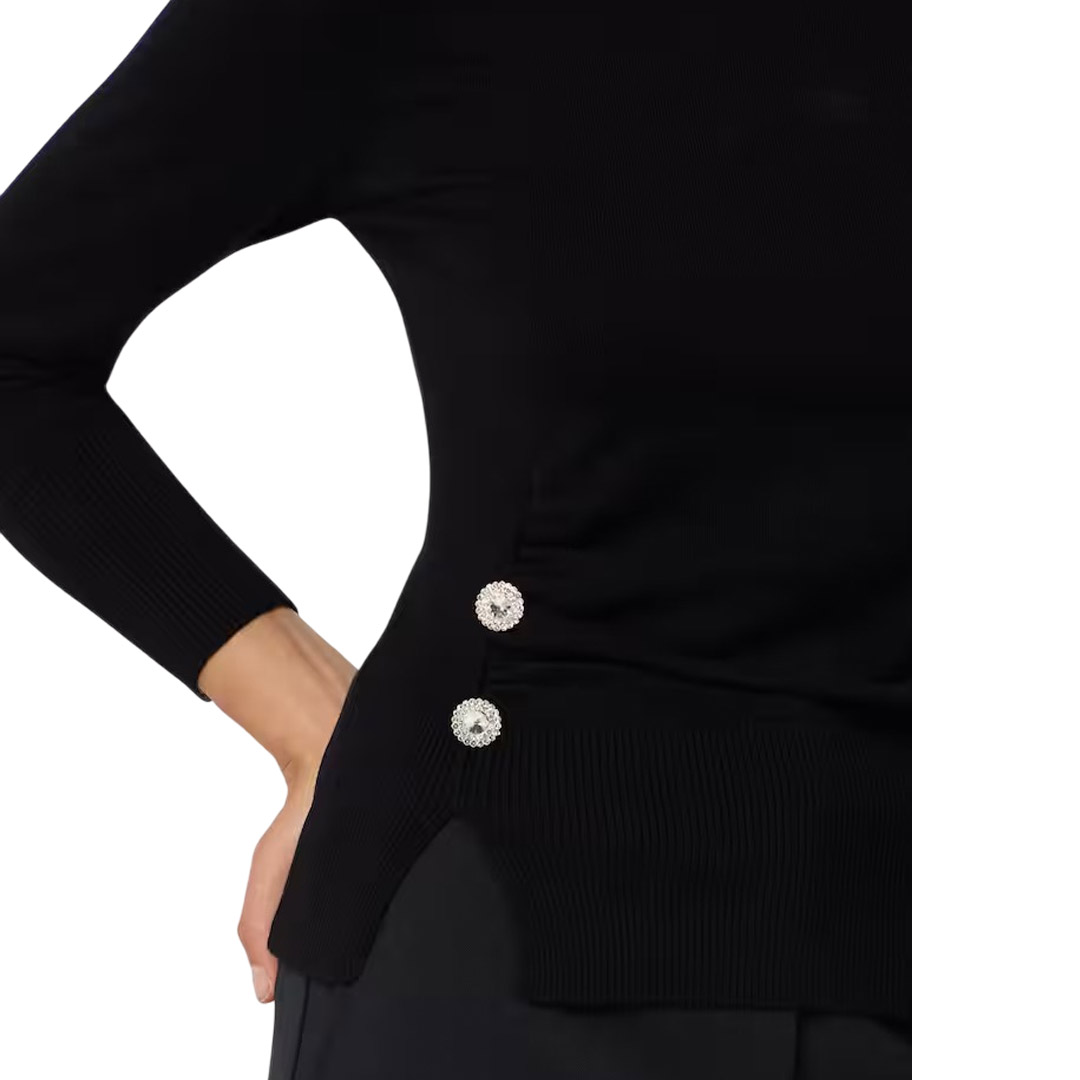 Maglia in misto viscosa stretch. Fit aderente. Scollo stondato. Maniche a tre quarti. Motivo di spacco sul fianco destro con arricciature e doppio bottone gioiello