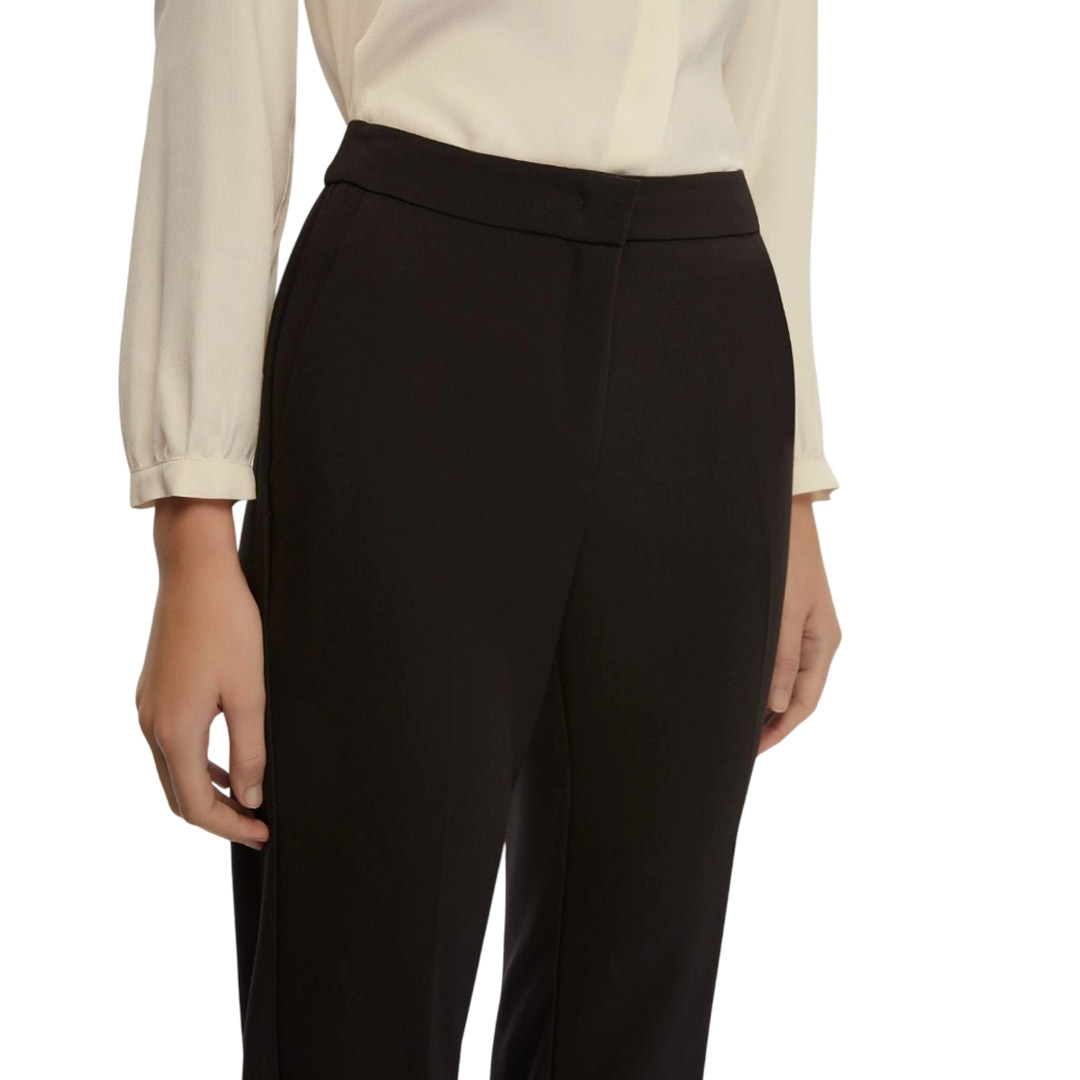 Il nuovo basico ha una marcia in più: questo pantalone scolpisce la silhouette con una linea aderente che si apre in un flare misurato. Versatile e con dettagli tailoring, si abbina armoniosamente alle camicie in seta, ai cappotti o ad una maglia boxy che crea volume a contrasto. Pantalone in tessuto doppio stretch Fit aderente con linea flare Chiusura con gancio nascosto Tasche laterali alla francese Piega stirata fronte e retro