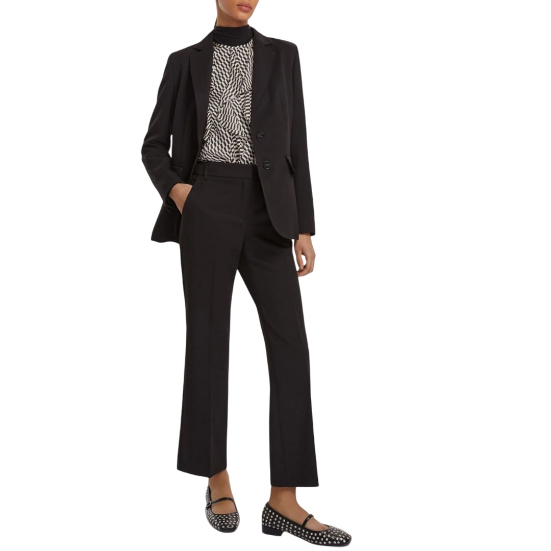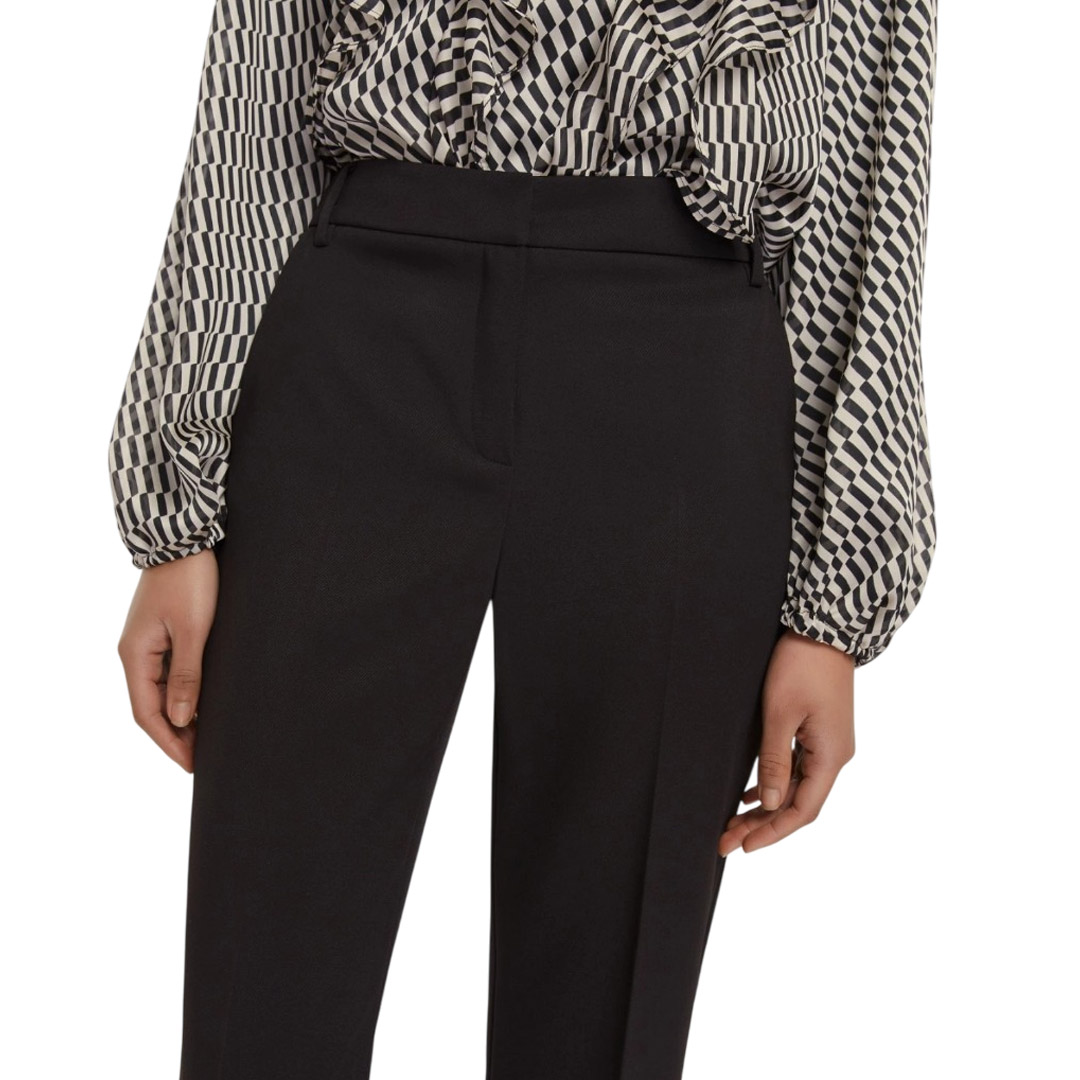 Vero must have del guardaroba contemporaneo, il pantalone slim flare slancia la silhouette e ti offre tutta la versatilità che cerchi. Dall'ufficio alle serate informali. Pantalone in diagonale tecnico bistretch Fit slim con linea flare al fondo Chiusura con gancio a uomo e zip nascosta Cintura con passanti Tasche laterali alla francese Piega stirata fronte e retro
