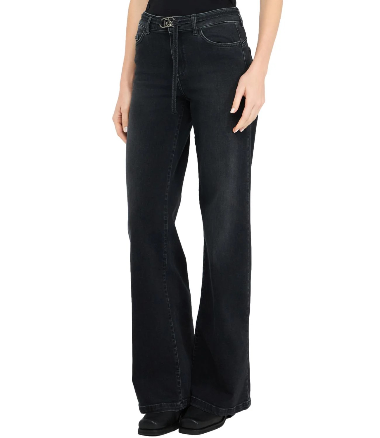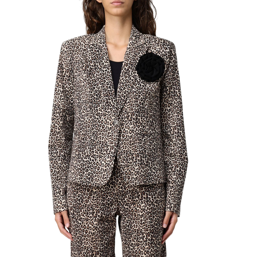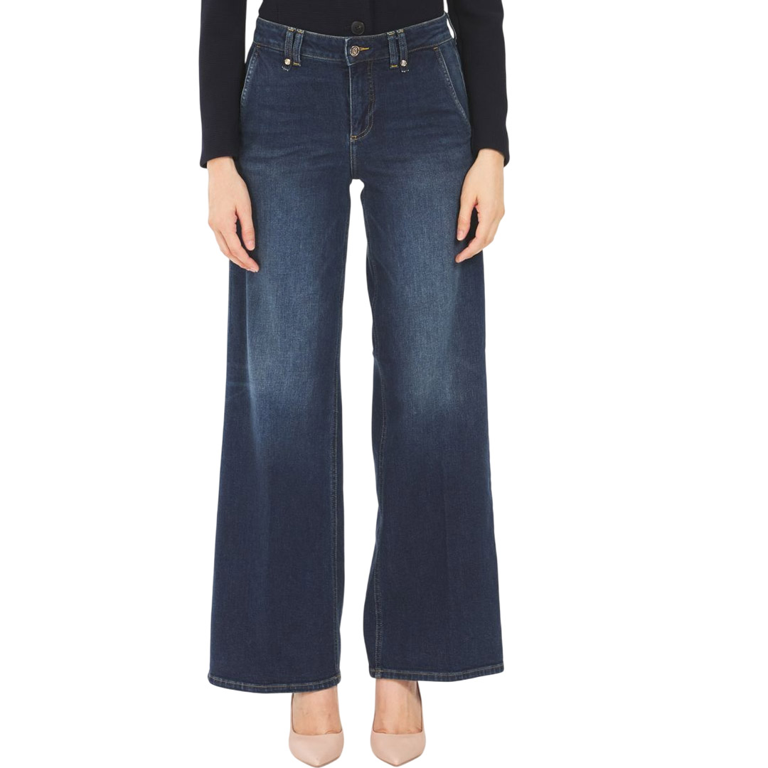 Giacca in denim di cotone Lavaggio used Strass applicati Collo a camicia Taschini con patta e bottone Tasche sui lati Maniche lunghe Polsi con bottone Orlo sfrangiato Patch logata sul retro Chiusura con bottoni