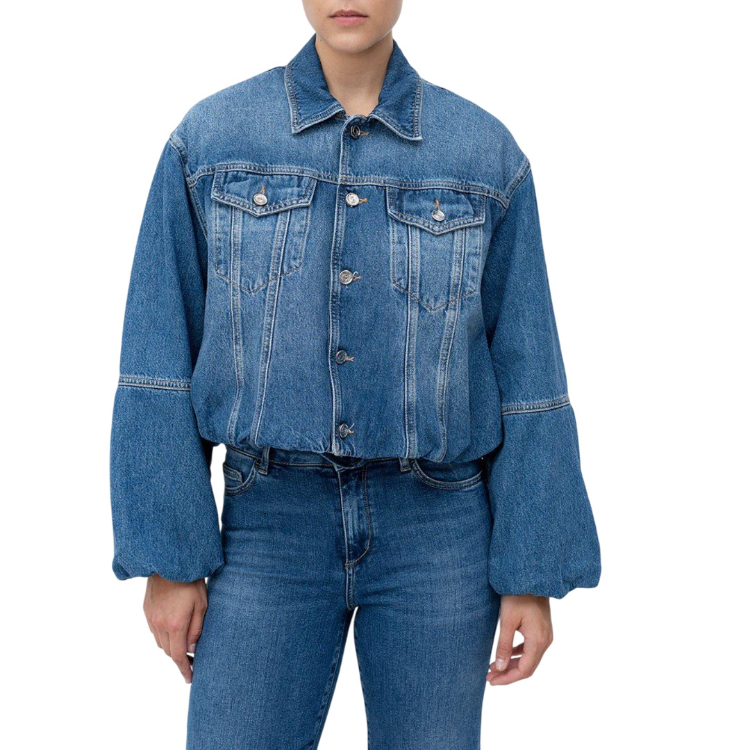 Jeans cropped in denim di cotone stretch Lavaggio used Vita alta Gamba flare Modello cinque tasche Cintura sur ton con fibbia logata in abbinamento Risvolto al fondo Logo in metallo sul retro
