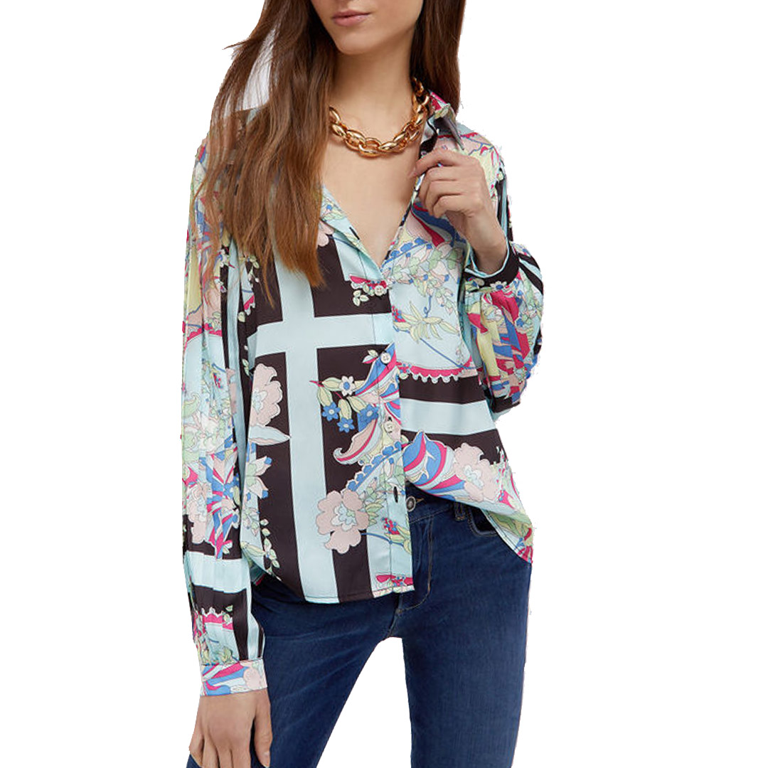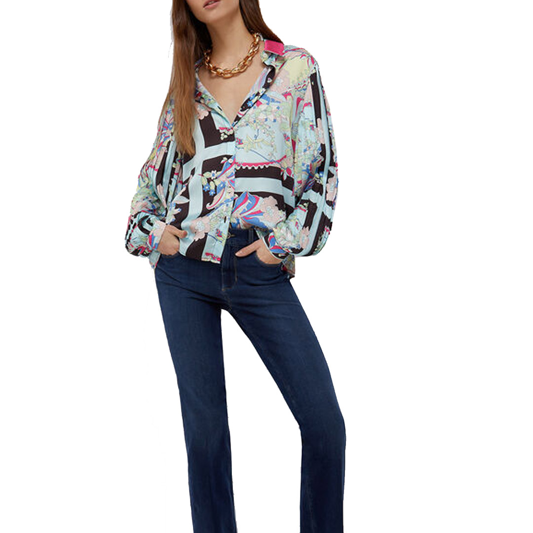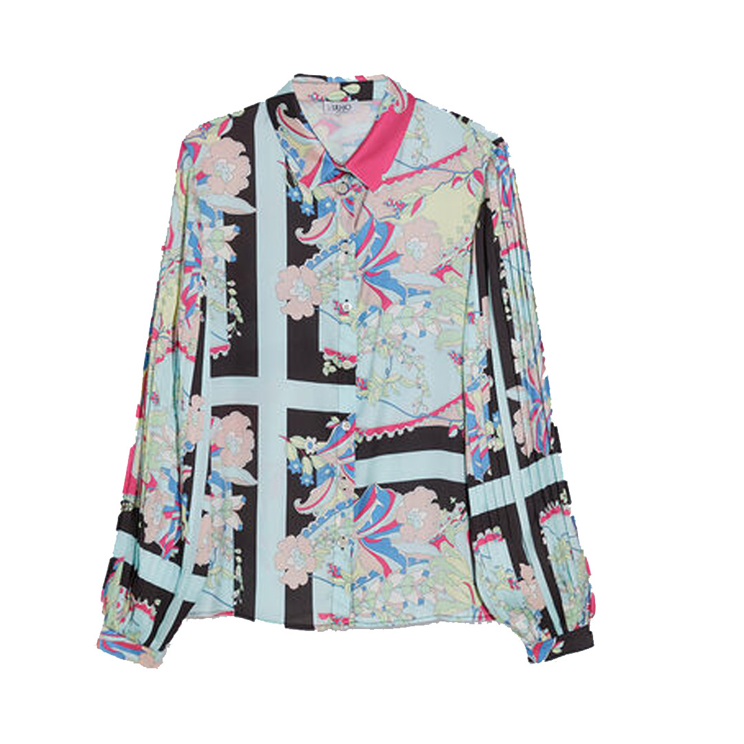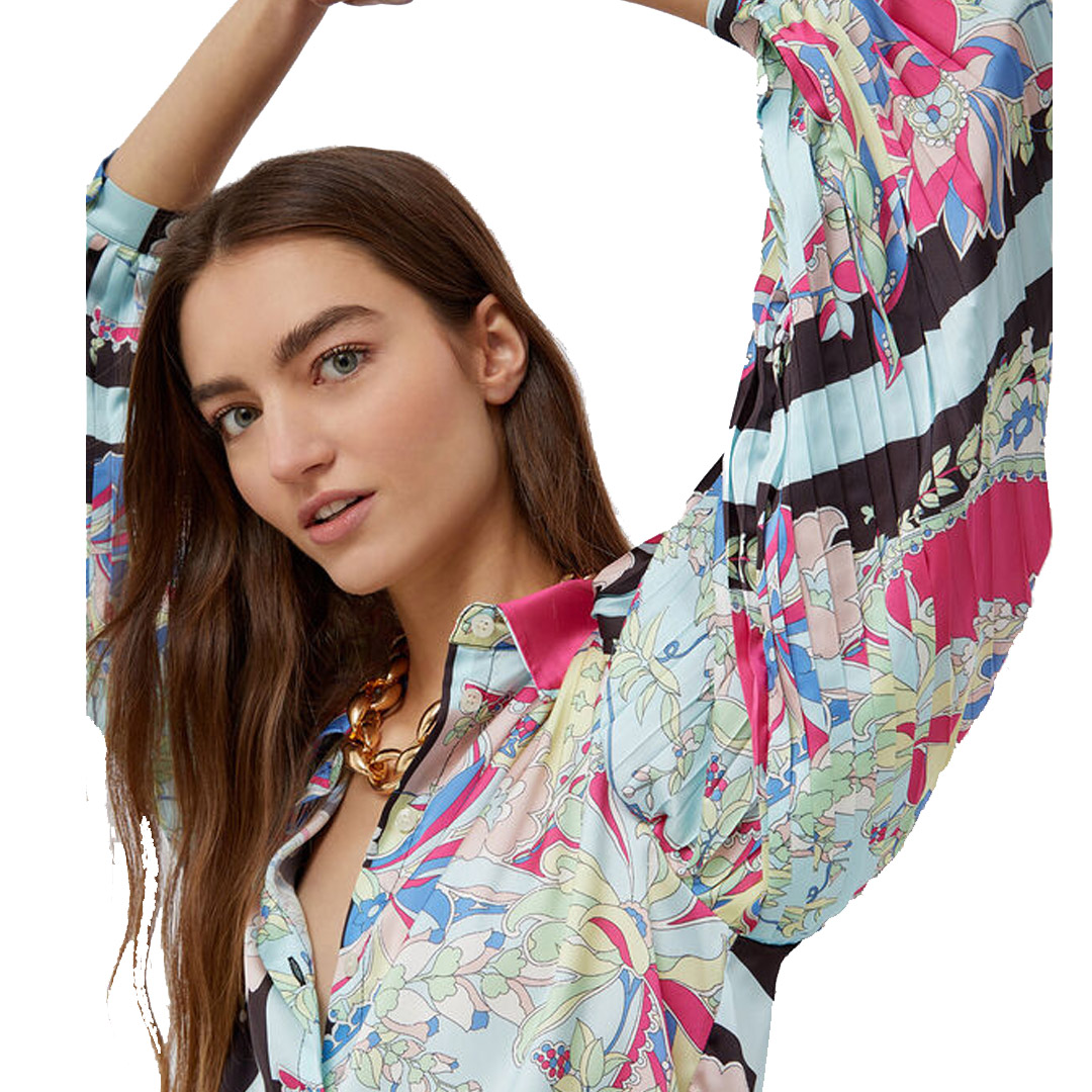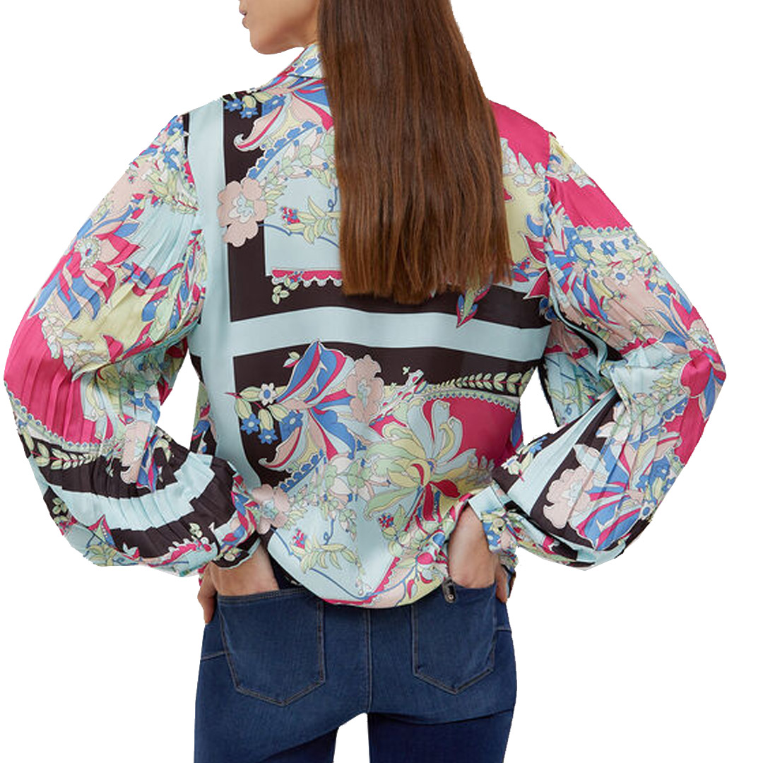 Camicia in raso Stampa all over Lavorazione plissé sulle maniche Maniche a sbuffo