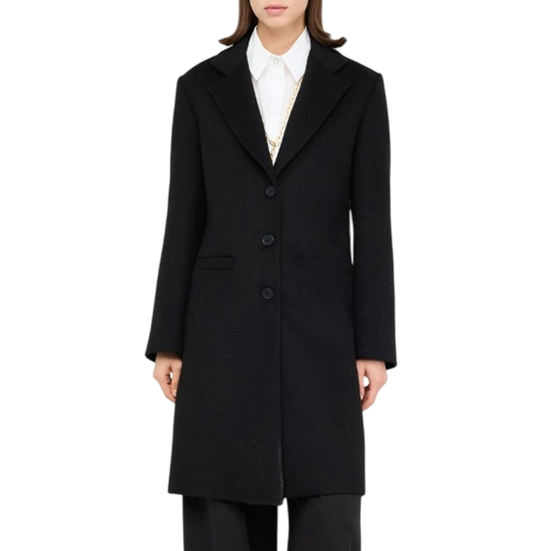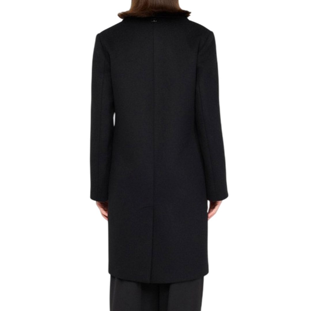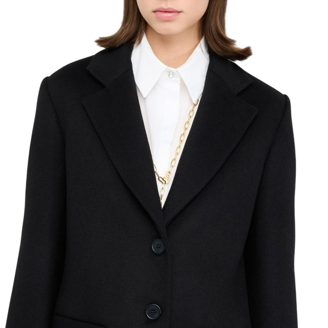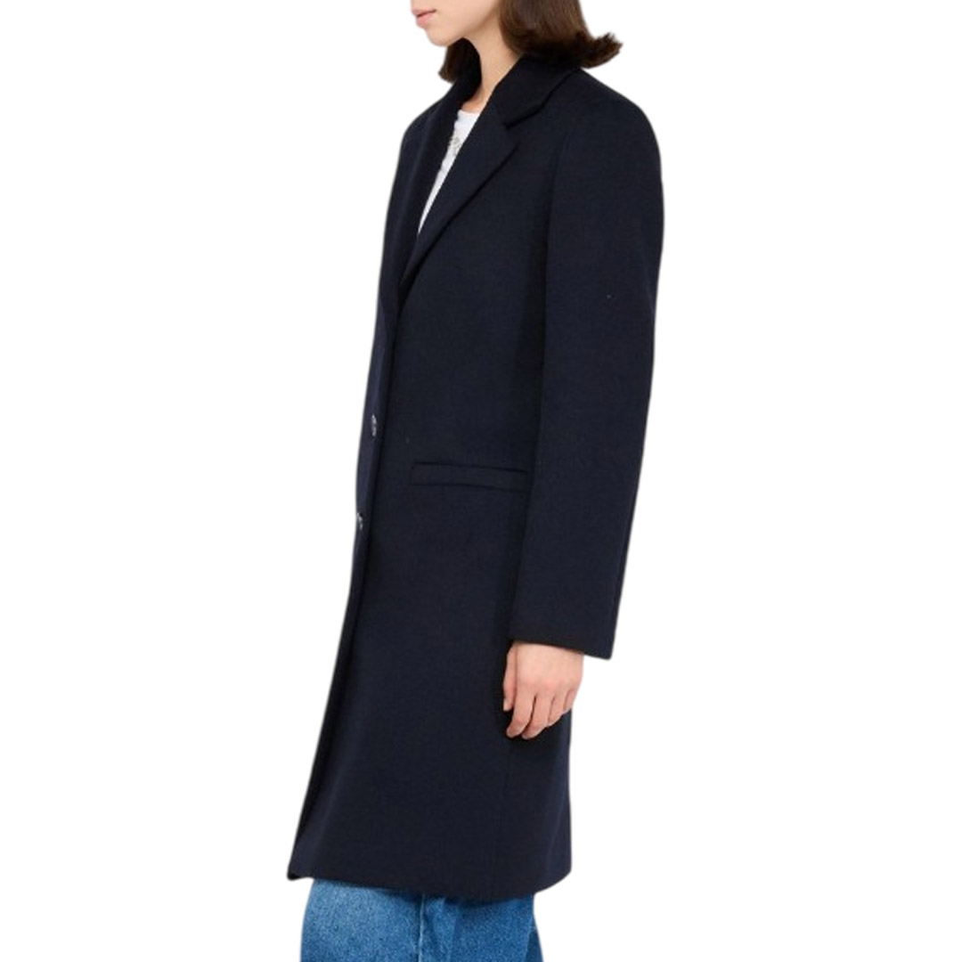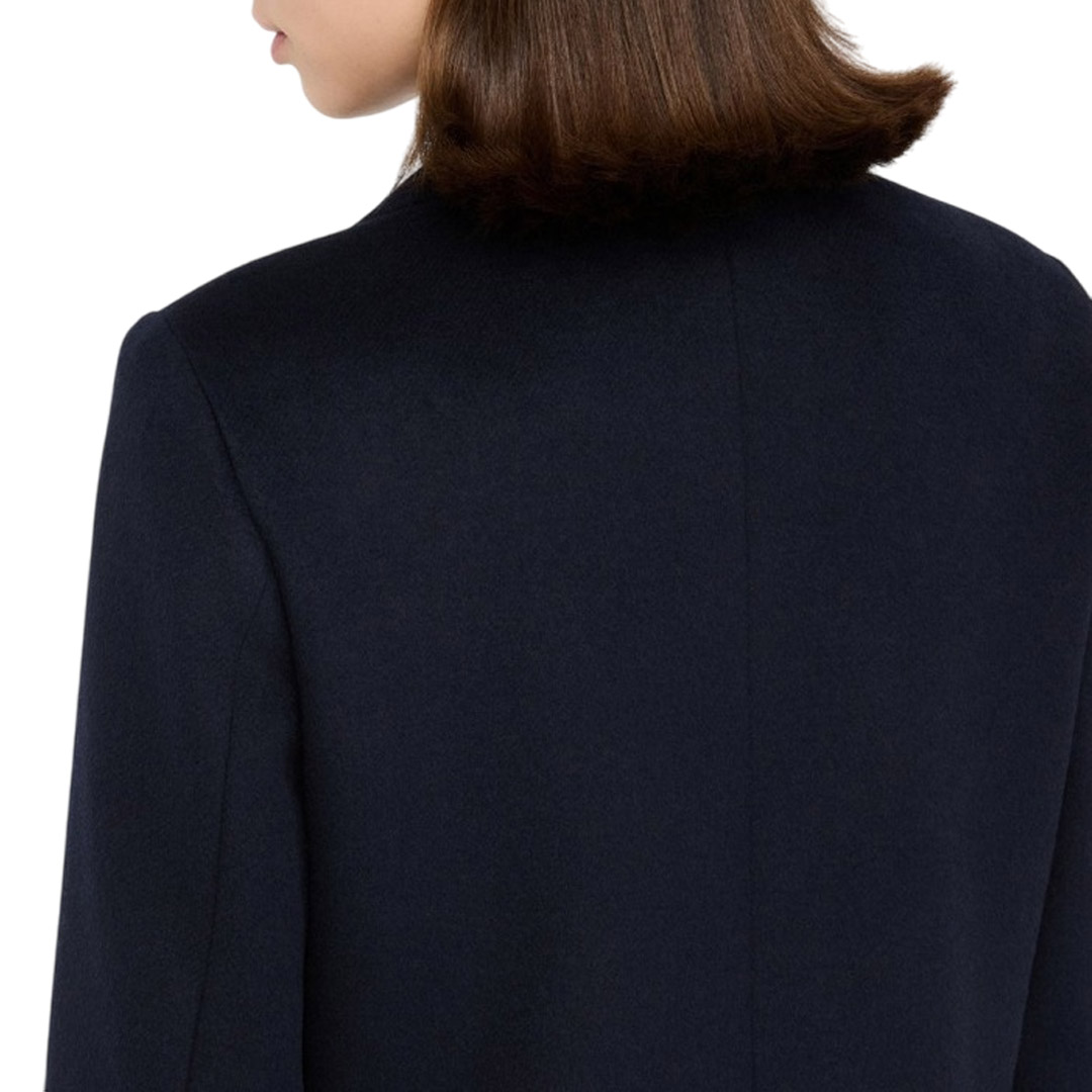 Cappotto blu scuro in lana Rever classico Tasche a filetto Spacchetto sul dietro Chiusura monopetto a tre bottoni