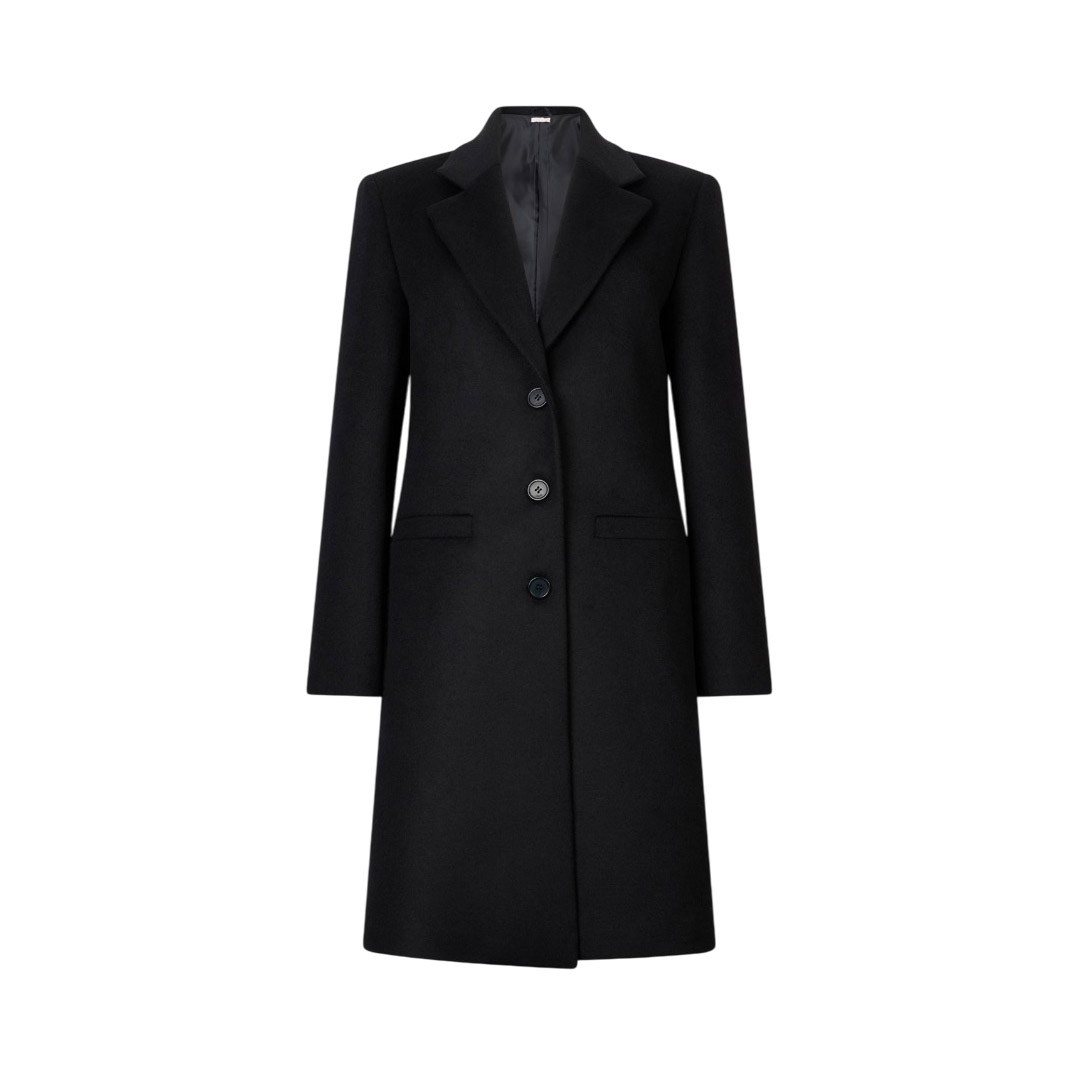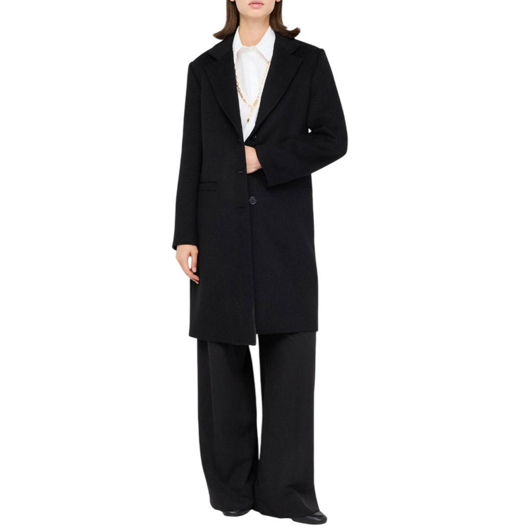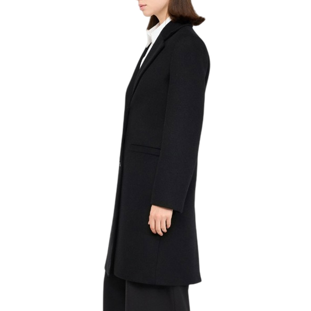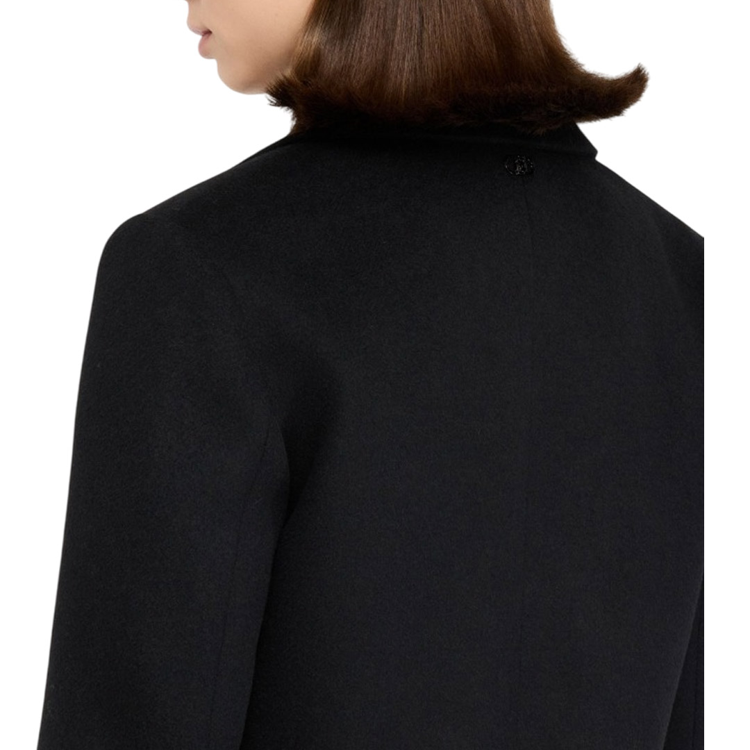 Cappotto blu scuro in lana Rever classico Tasche a filetto Spacchetto sul dietro Chiusura monopetto a tre bottoni