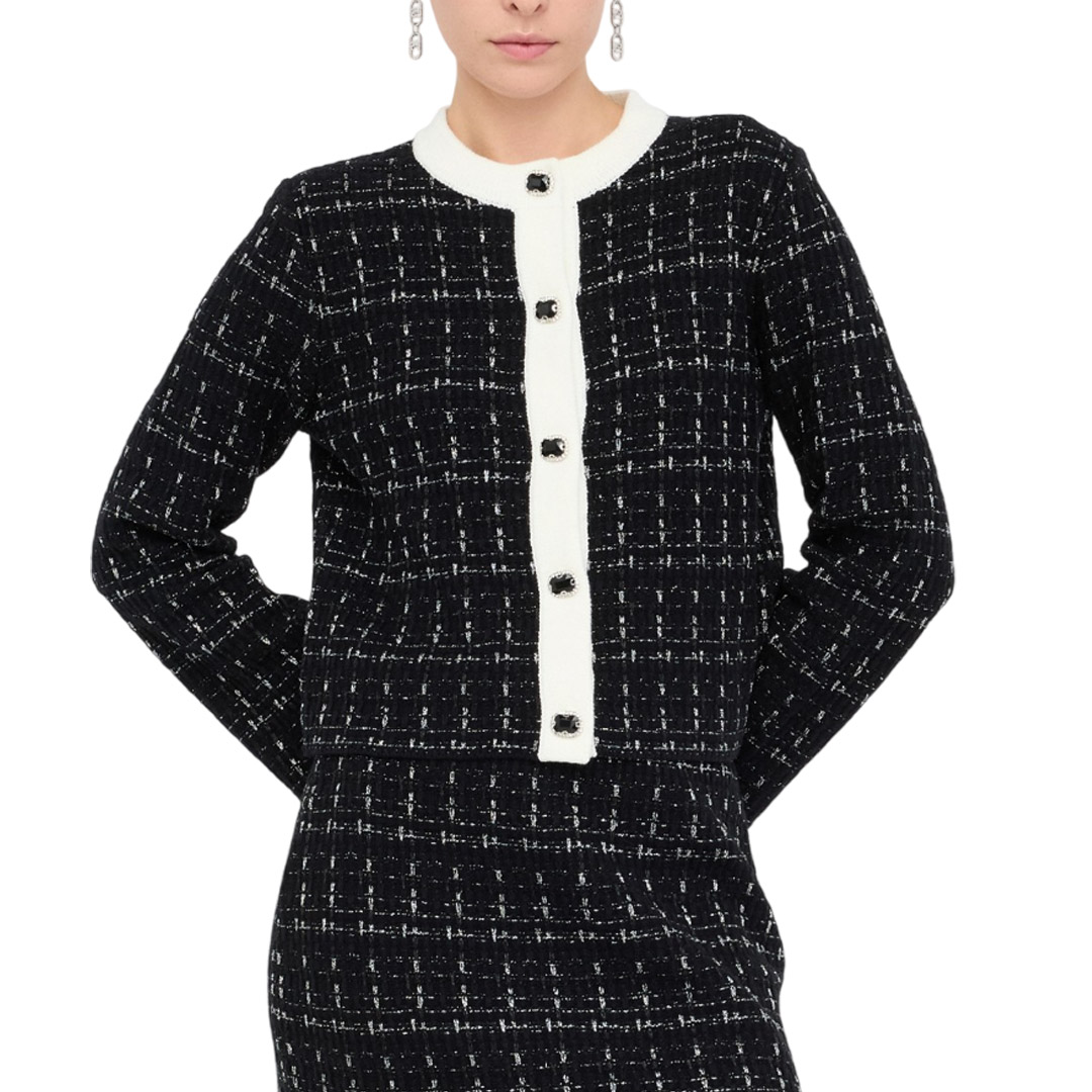 Giacca da donna in maglia Filati in misto lana Effetto sparkling Chiusura con bottoni gioiello