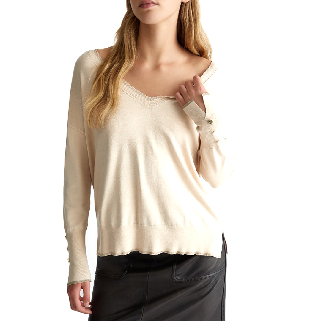 Liujo Jeans Maglia Con Scollo A V Crema Wf4009Ms49I 126373