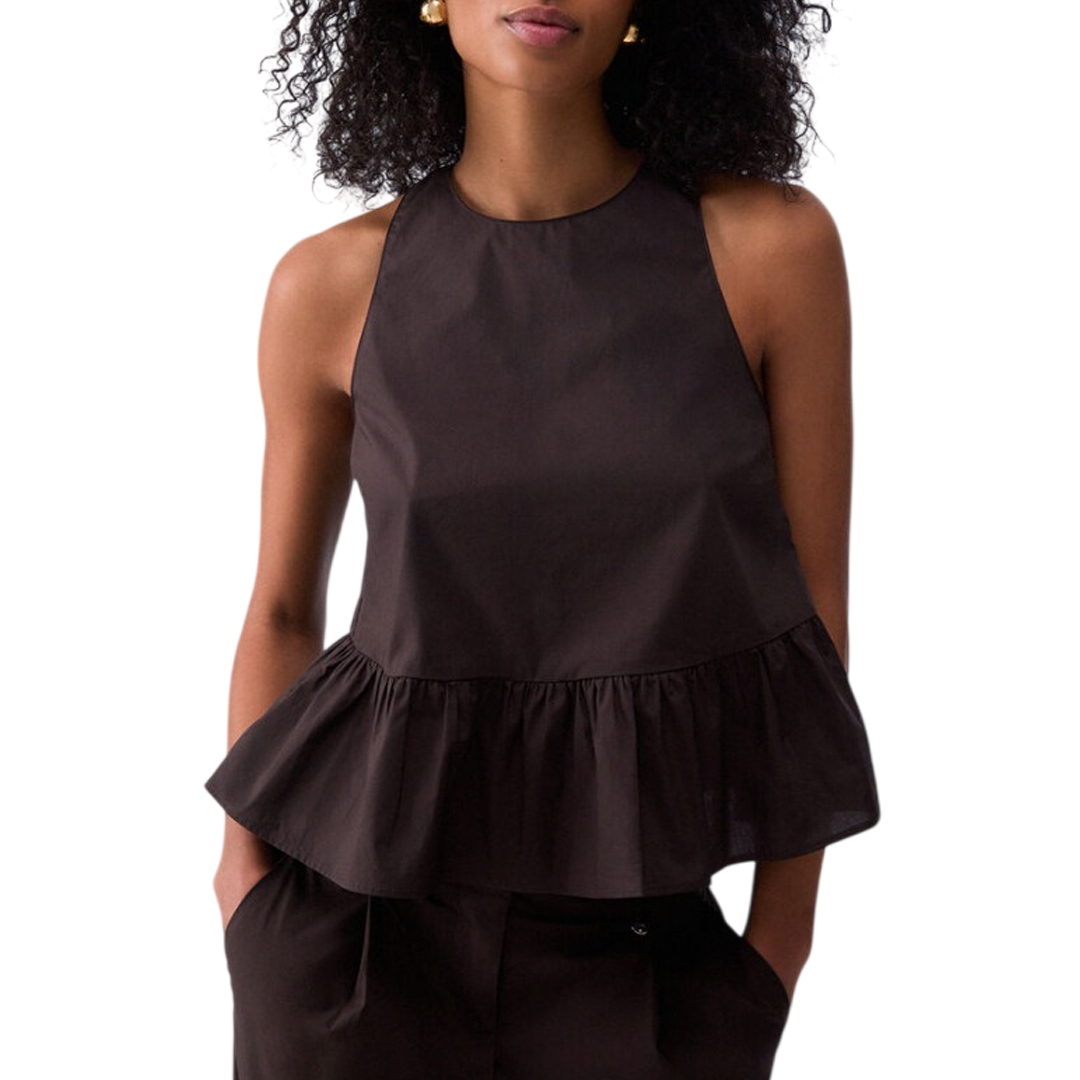 Top in popeline Filati in puro cotone Girocollo Chiusura a fiocco posteriore Taglio peplum con volant sul fondo