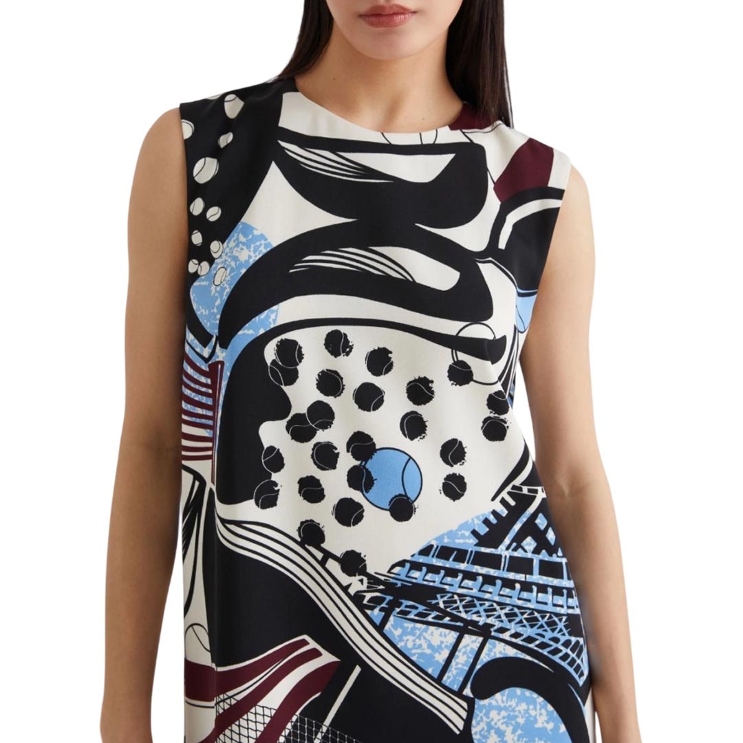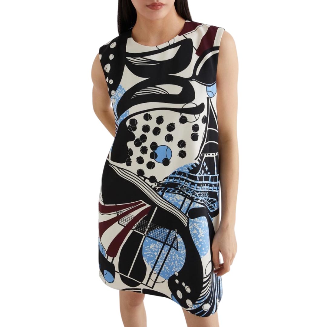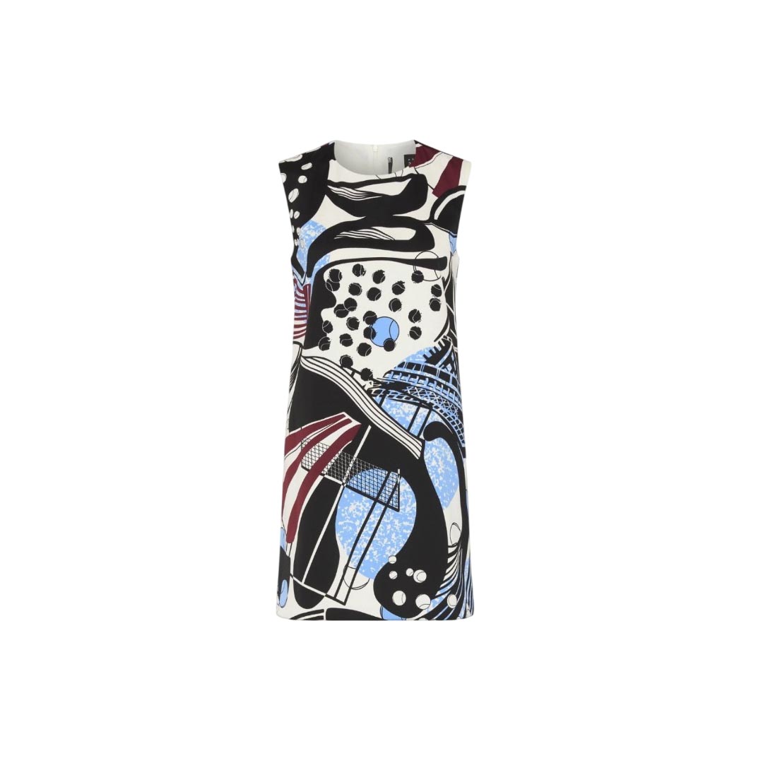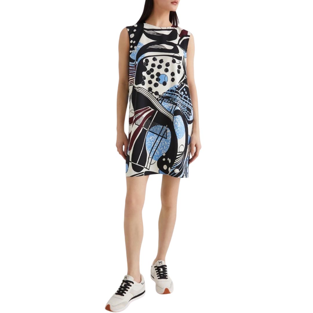 Protagonista della nuova collezione, la macro stampa "Ball machine illumina con i suoi abbinamenti cromatici questo abito smanicato. Corto e leggermente svasato per slanciare la silhouette, è perfetto per le giornate in città, con sneaker e tote bag. Tessuto principale contenente una percentuale di poliestere riciclato superiore al 50% Abito in crêpe envers satin con stampa 365 ball machine Fit svasato Scollo stondato con zip posteriore Modello smanicato Capo foderato in crêpe de Chine