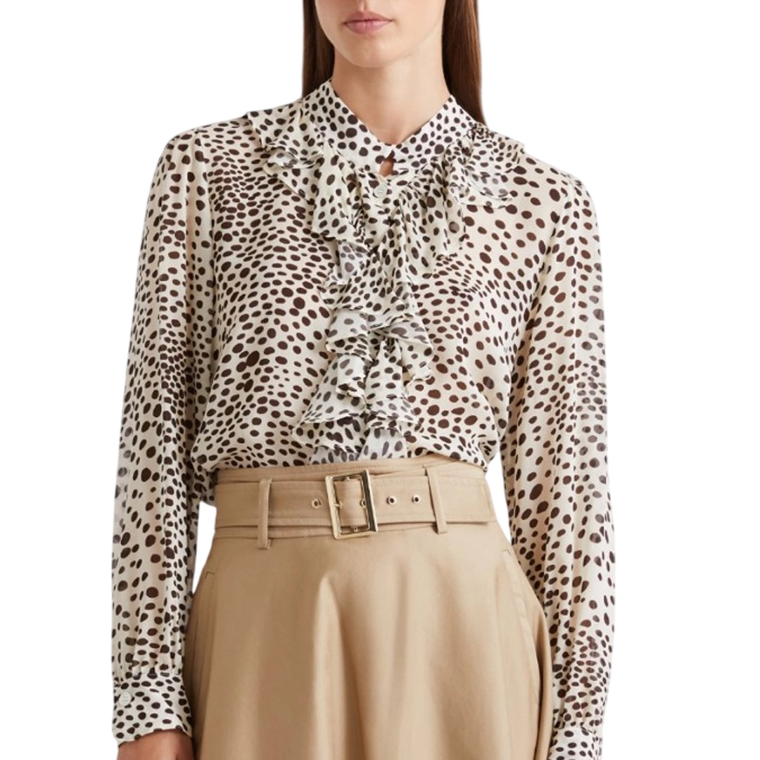 Morbide rouche dal cuore romantico decorano questa camicia in georgette. Da abbinare a gonne dai toni luminosi, sotto lo spolverino must have di primavera. Tessuto principale contenente materie prime derivanti dalla cellulosa del legno, fibra ricavata nel rispetto del patrimonio forestale Camicia in georgette di viscosa stampata Fit regolare Collo alla coreana e abbottonatura nascosta Motivo di rouche sul davanti Manica lunga con arricci ai polsi e fondo stondato con spacchetti