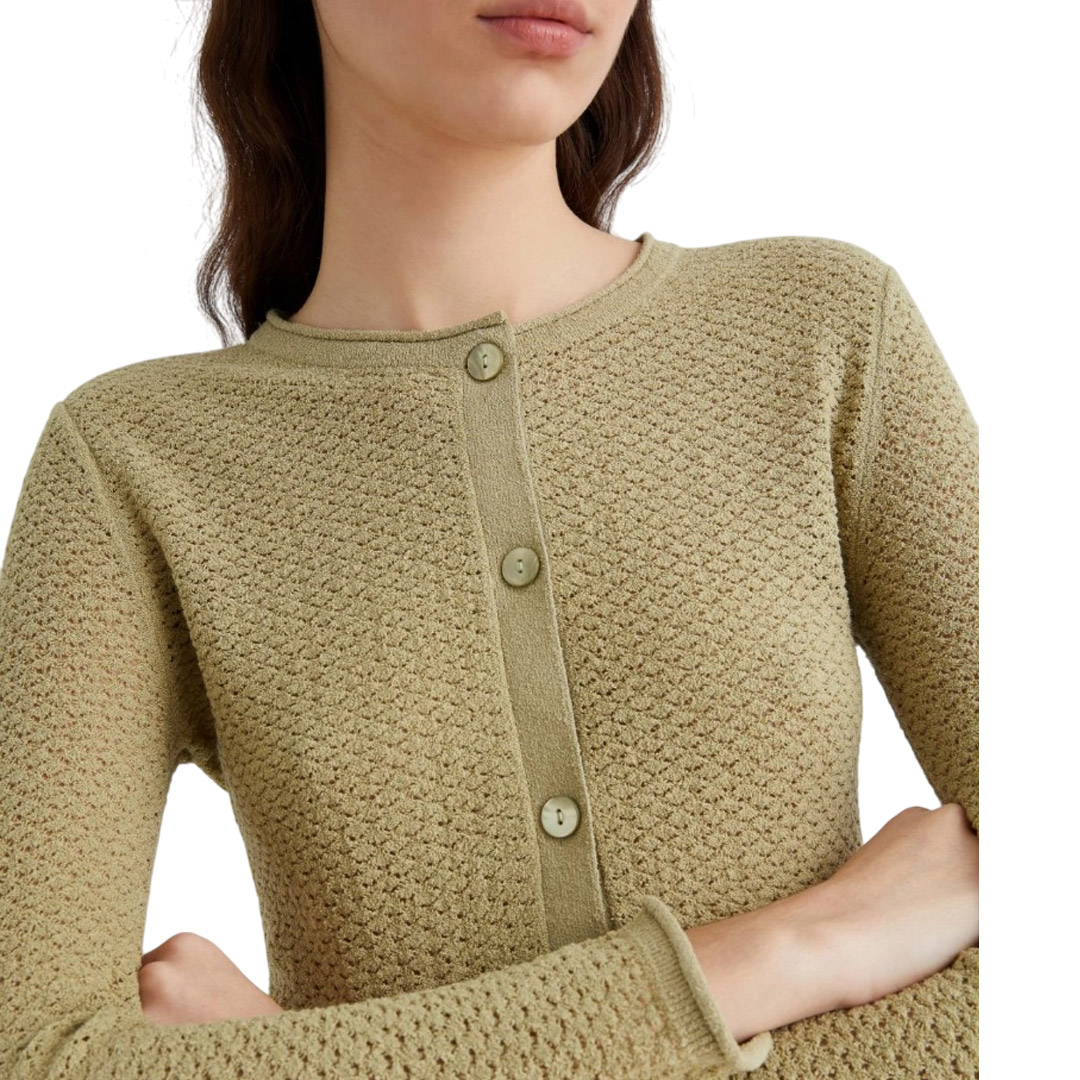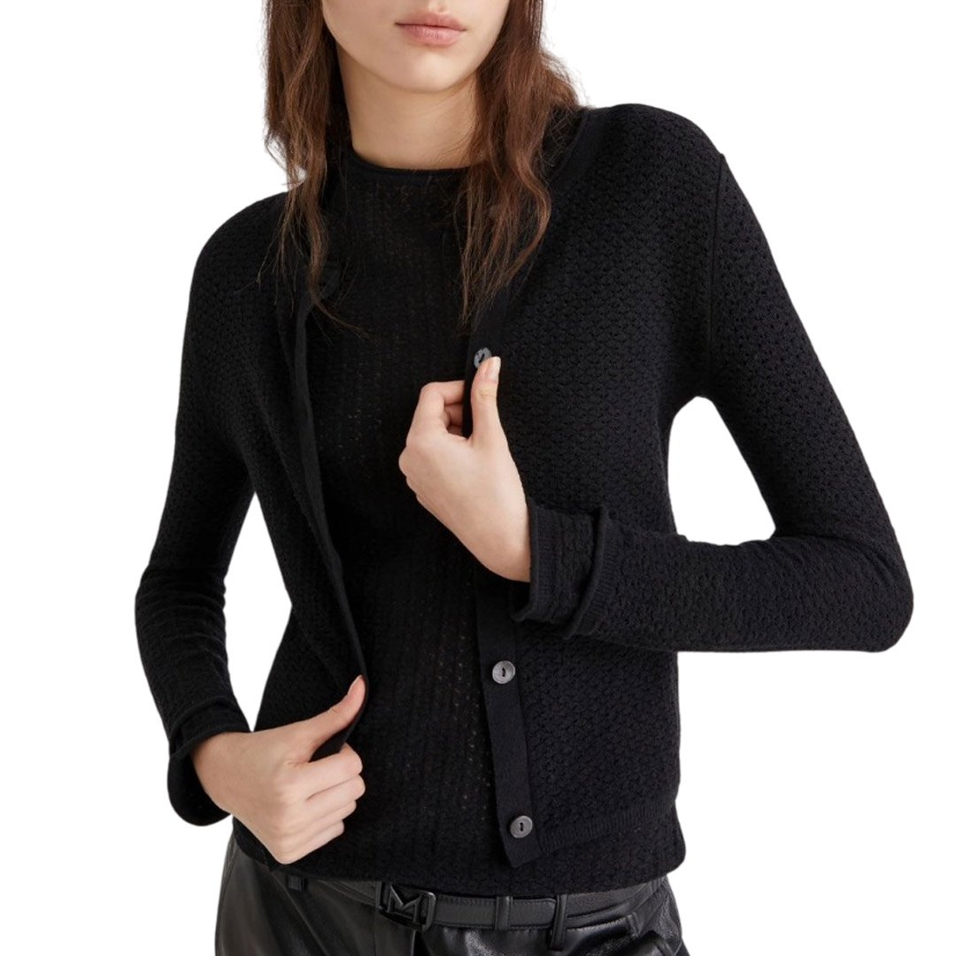 Mini cardigan lavorato con punto pizzo, sofisticato e confortevole, da indossare a ripetizione nella stagione fredda. Con fit aderente per una silhouette scolpita. Mini cardigan in filato di misto cotone lavorato con punto pizzo Fit aderente Scollo stondato Manica lunga Abbottonatura a vista