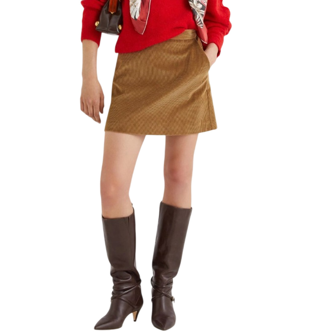 Con la sua linea pulita e il velluto a coste questa gonna aggiunge una nota seventy nei tuoi look quotidiani. Completa il tutto con maglia a contrasto e stivali, sei pronta per uscire. Gonna in velluto a coste Fit dritto Apertura posteriore con zip invisibile Tasche alla francese sui fianchi Capo foderato