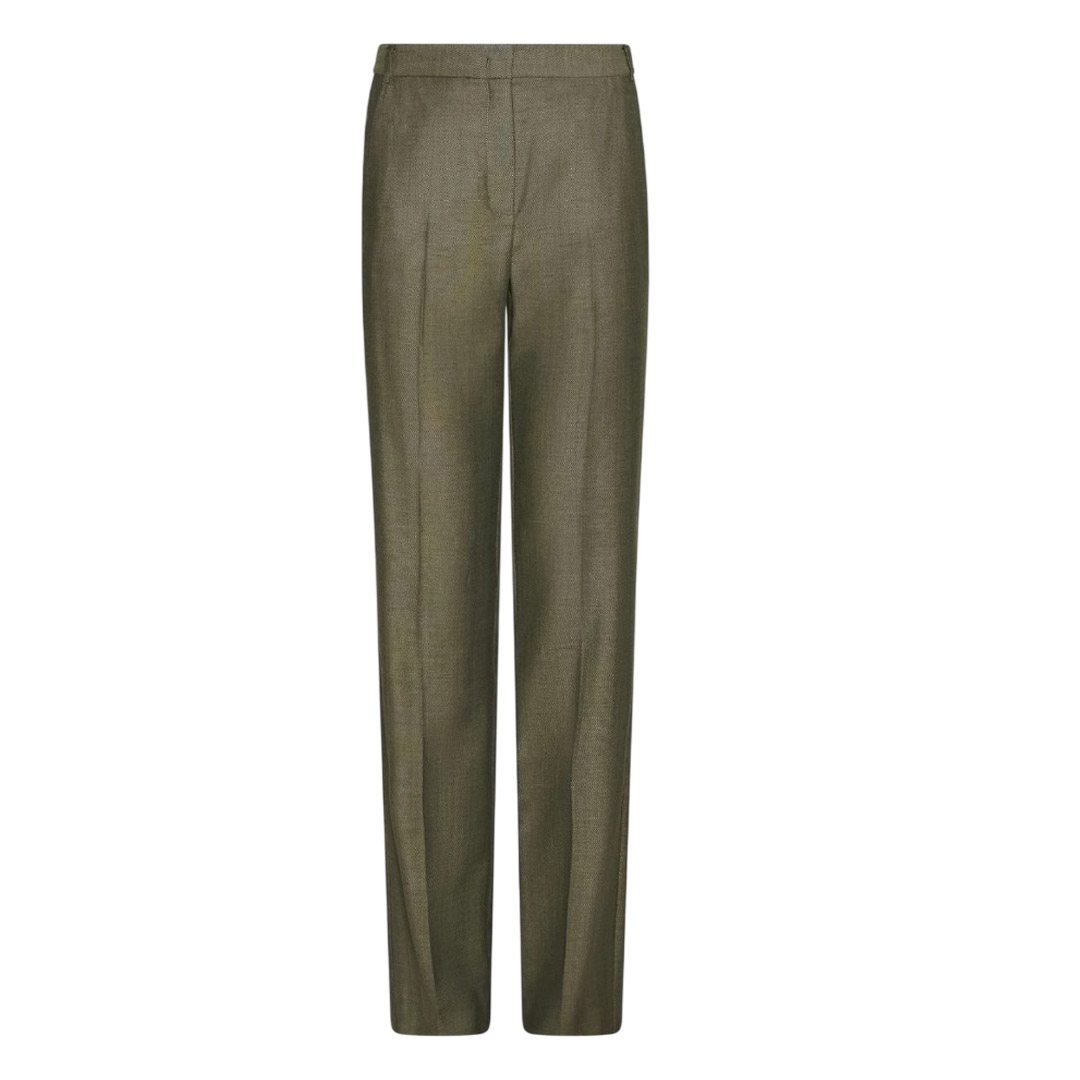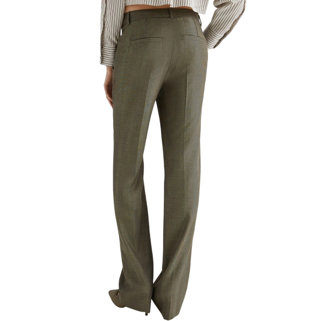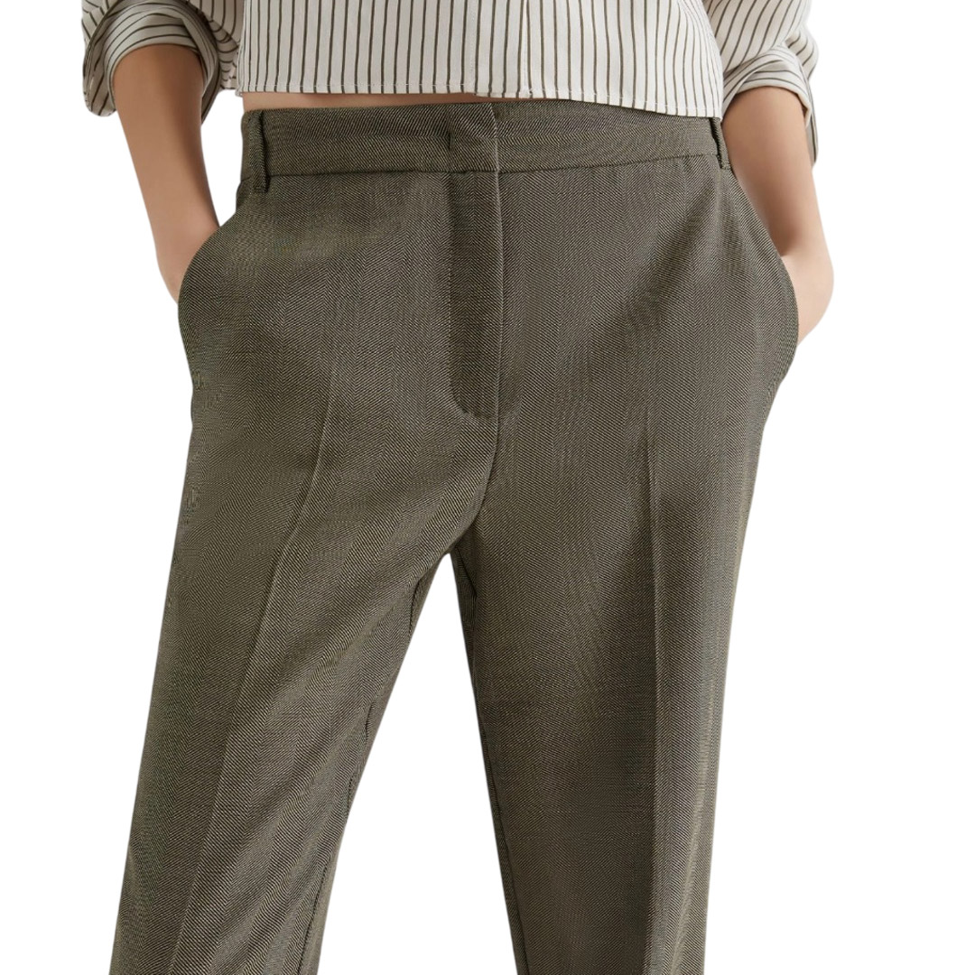 Versatile, fluido, in morbida saglia chevron per una matericità ricca: il pantalone classico non è mai stato così cool. Aggiungi una camicia dal taglio maschile e le décolleté per un'eleganza che non va mai fuori moda. Pantalone in saglia fluida di misto lana effetto resca Fit dritto Chiusura con gancio a uomo e zip nascosta Piega stirata fronte e retro Tasche laterali alla francese e posteriori a filetto