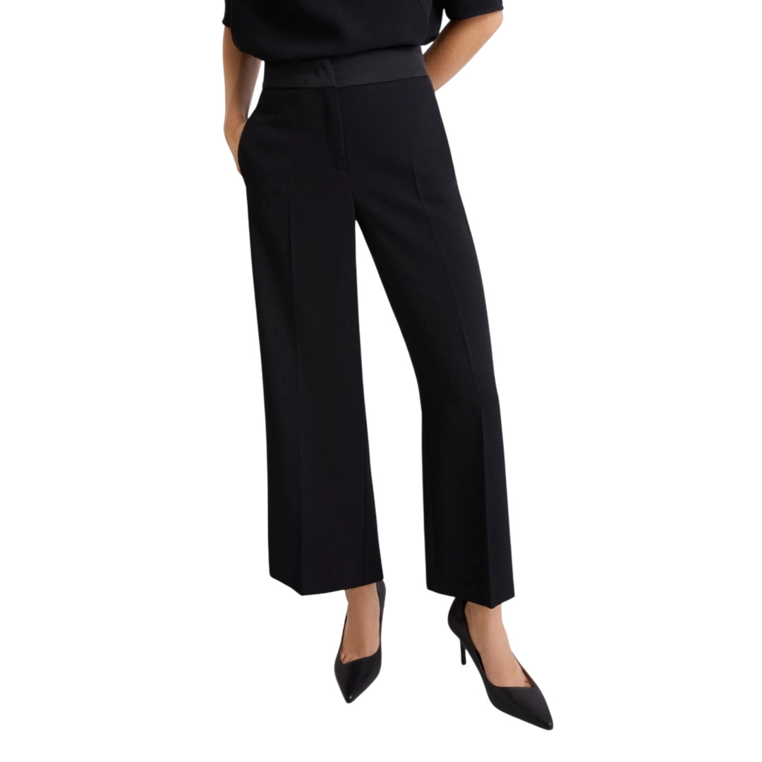 Morbido e versatile, il pantalone in envers satin si presta a completare infiniti look: provalo con un blazer doppiopetto per un'allure business, o con camicia maschile per un approccio più versatile alle tue giornate. Tessuto principale contenente una percentuale di poliestere riciclato superiore al 50% Pantalone in crêpe envers satin Fit regolare Chiusura con gancio a uomo Inserto elastico sul retro della vita, con piega stirata fronte e retro Tasche laterali inserite e posteriore a filetto