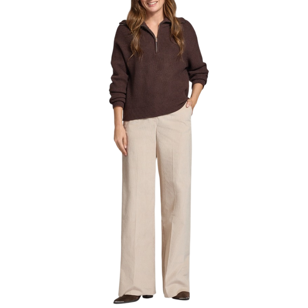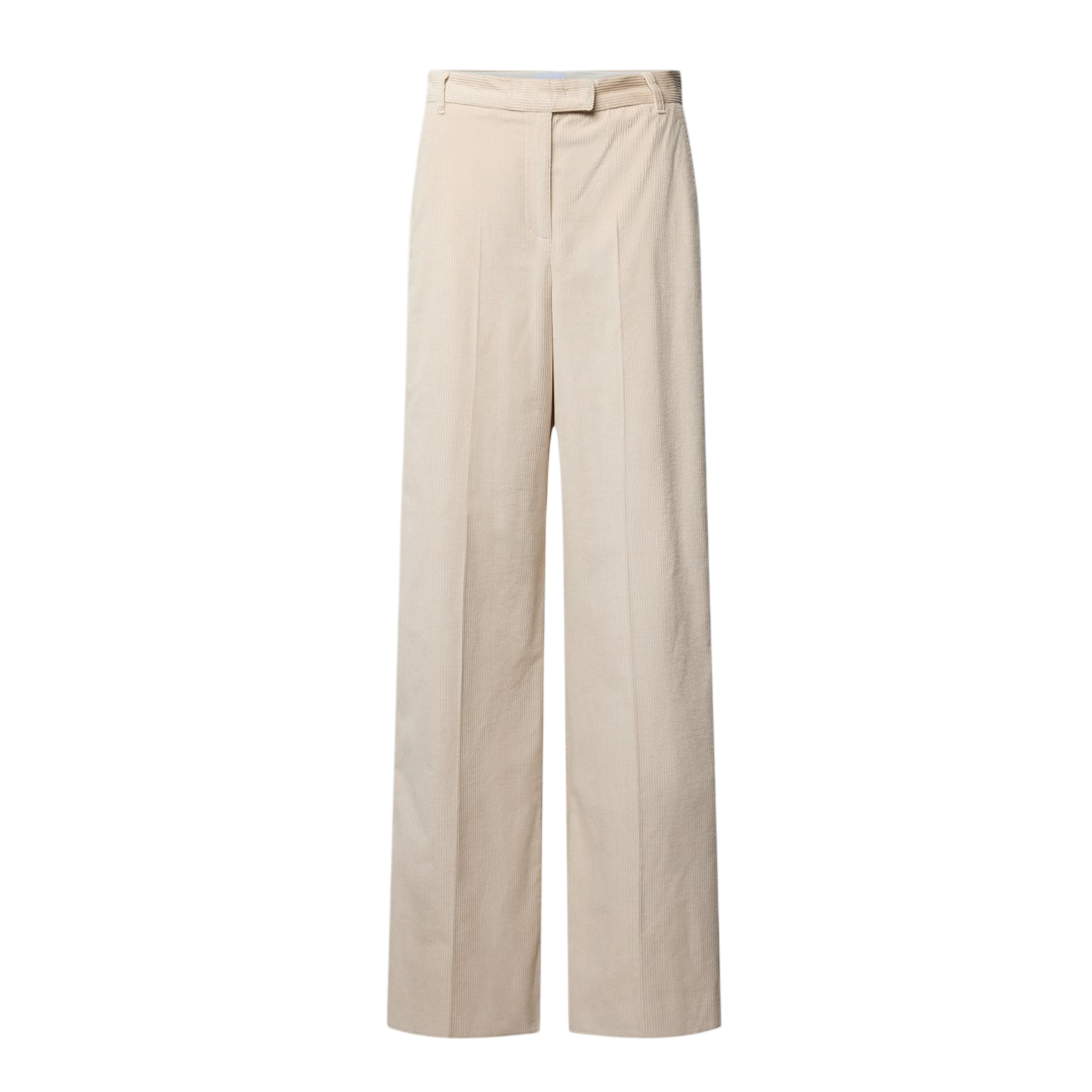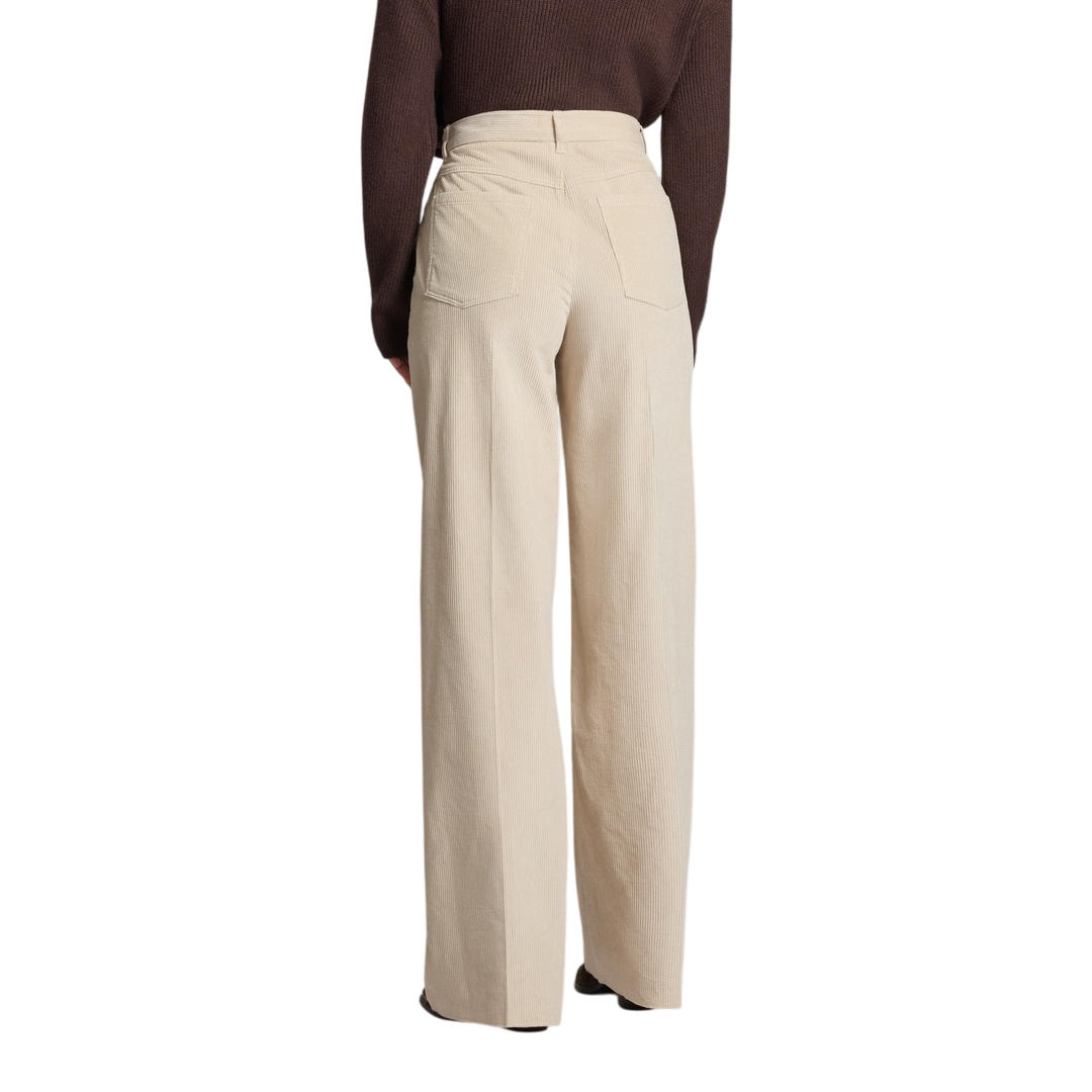 Pantalone in velluto di misto cotone a coste. Fit regolare, linea dritta. Chiusura con bottone e gancio interno. Tasche laterali alla francese e a filetto sul retro. Piega stirata fronte e retro