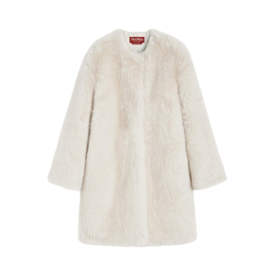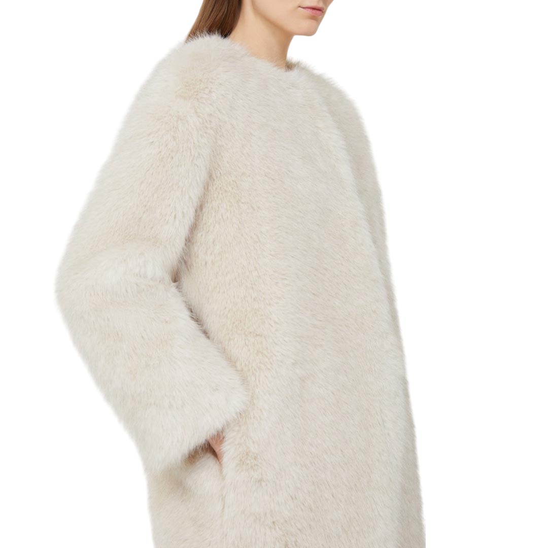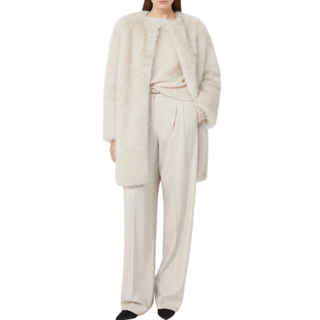 Cappotto midi soffice, che offre una vestibilità avvolgente e confortevole. Chiusura frontale e dettagli di pelletteria. Cappotto in tessuto dall’effetto faux fur Vestibilità oversize Girocollo Maniche lunghe con spalla scesa Chiusura frontale con gancetti da pelletteria Tasche inserite nei fianchi Foderato