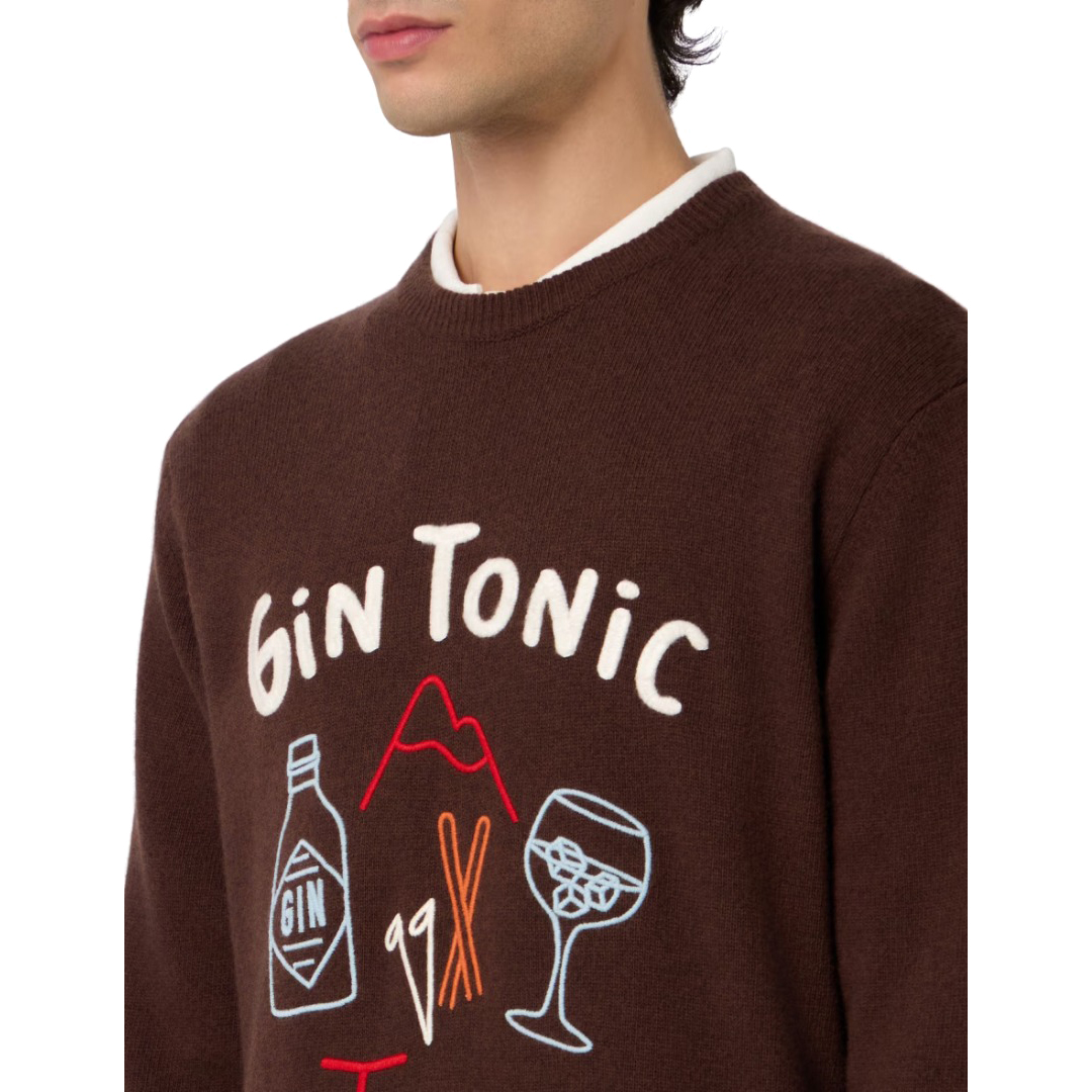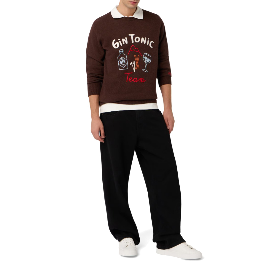 Maglione girocollo regular fit con stampa ricamata Gin TOnic. Tessuto morbido e flessibile che non irrita a contatto con la pelle.