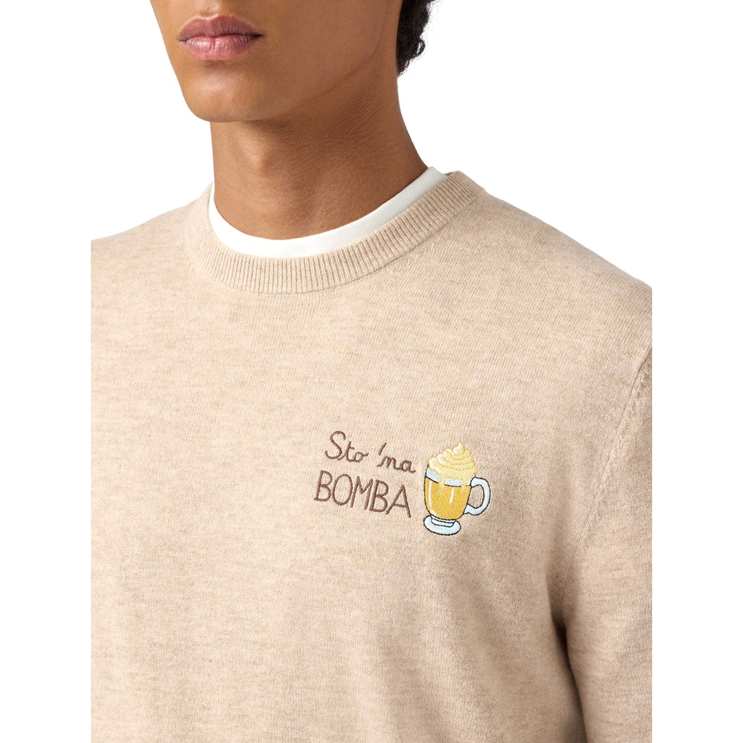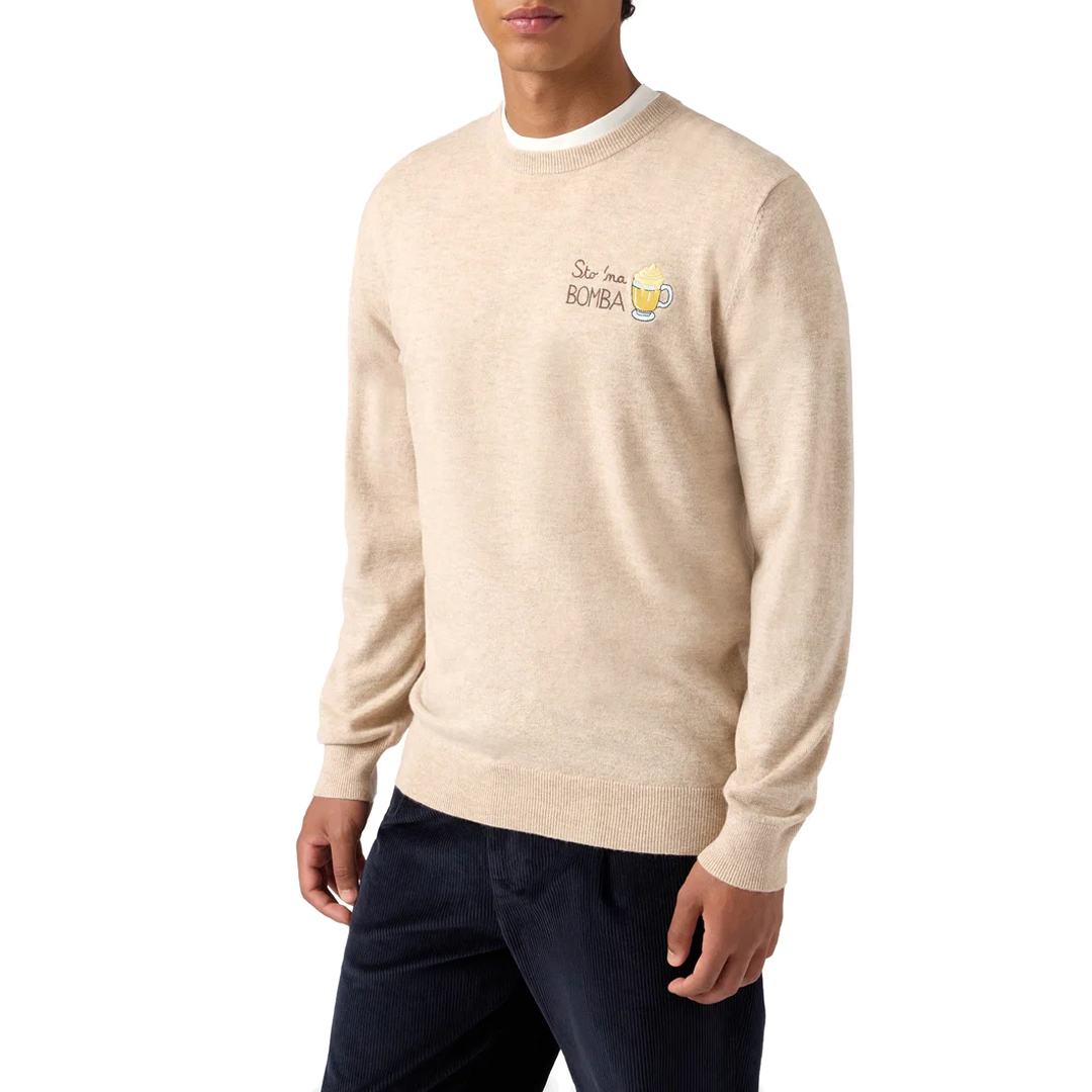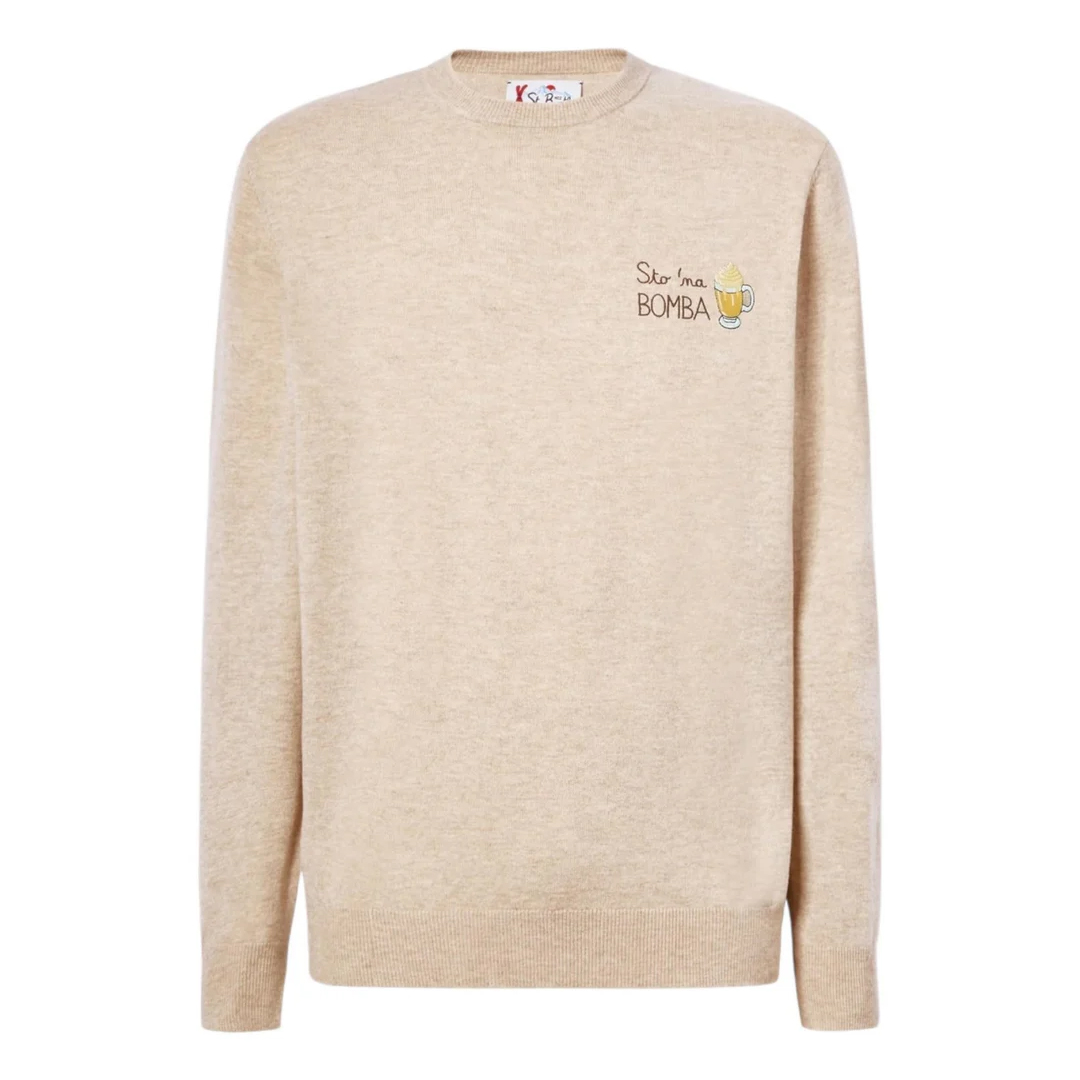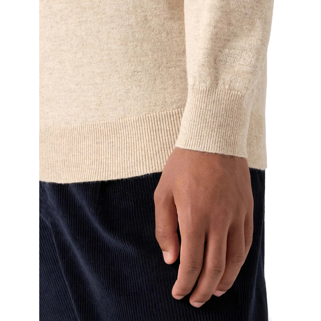 Maglione a girocollo Maglia rasata fn. 12 Misto cashmere Maniche lunghe Fondo e polsi a coste Vestibilità regolare Ricamo polso St. Barth. Tinta unita beige Ricamo punto cuore Sto na bomba