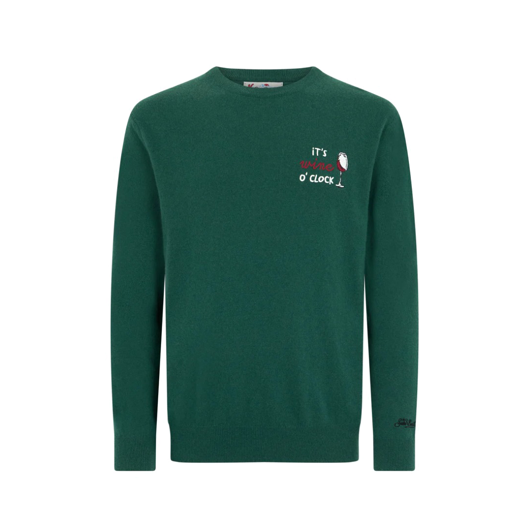 Heron è il maglione da uomo che unisce eleganza e versatilità in un design impeccabile. Disponibile in diverse versioni, questo maglione è realizzato con materiali di alta qualità che garantiscono un comfort duraturo e una vestibilità perfetta. Il design raffinato e le finiture curate nei minimi dettagli rendono Heron adatto a diverse occasioni. Con dettagli ricercati e una silhouette moderna, Heron è il capo ideale per aggiungere un tocco di classe al tuo guardaroba. Maglione girocollo verde da uomo. Collo, polsini e orlo a costine. Ricamo logo St Barth sul polsino. Ricamo It's wine o'clock. Vestibilità regolare.