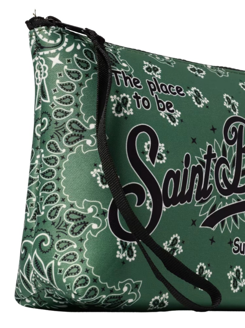 Pochette Aline Mc2 Saint Barth • Stampa bandanna verde. • Logo stampato esclusivo. • Chiusura con cerniera. • Pratica linguetta. Dimensioni: 20 x 14,5 x 7 cm