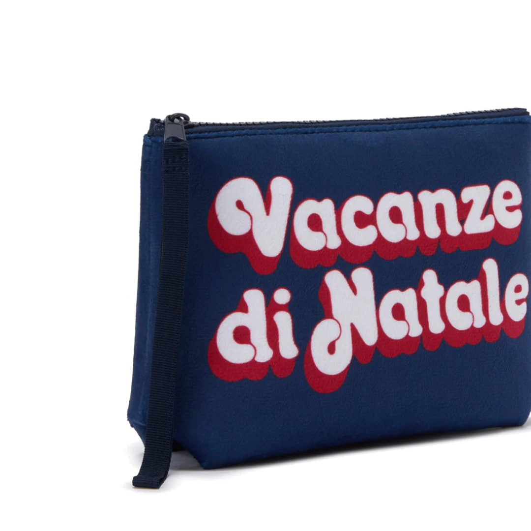 Iconica e festiva: la pochette che celebra le Vacanze di Natale con stile. Pochette in tessuto scuba Stampa Vacanze di Natale Passante per polso in gros-grain Logo stampato Dimensioni: 21 x 15,5 x 7 cm