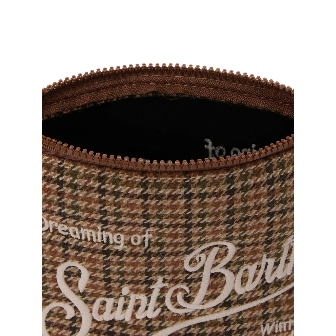 Sartoriale e classica: pied de poule per uno stile senza tempo. Pochette in tessuto scuba e misto lana Stampa pied de poule Passante per polso in gros-grain Logo ricamato Dimensioni: 21 x 15,5 x 7 cm